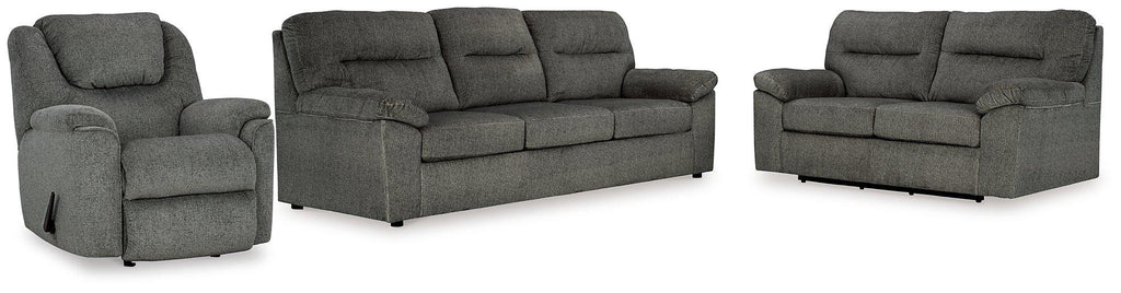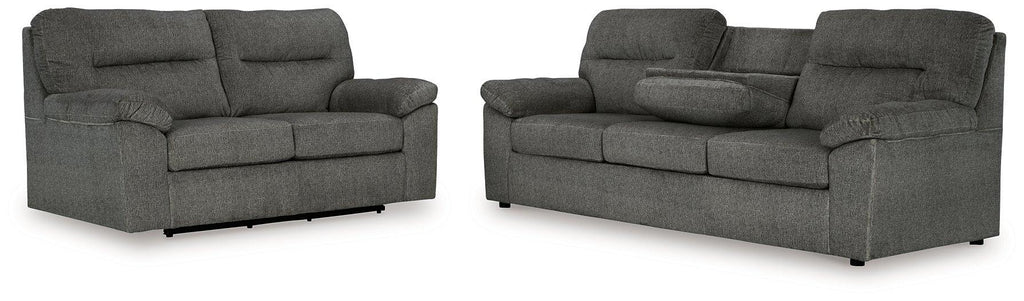 Make your living room the ultimate hangout with the Bindura upholstery package. Its buttery soft upholstery encourages you to lounge a while longer. And when it’s time to hit a peak state of relaxation, integrated cup holders and USB charging in the drop-down table keep all your essentials on hand. Comfortable, casual and contemporary, this set caters to the style you love and the function you crave.