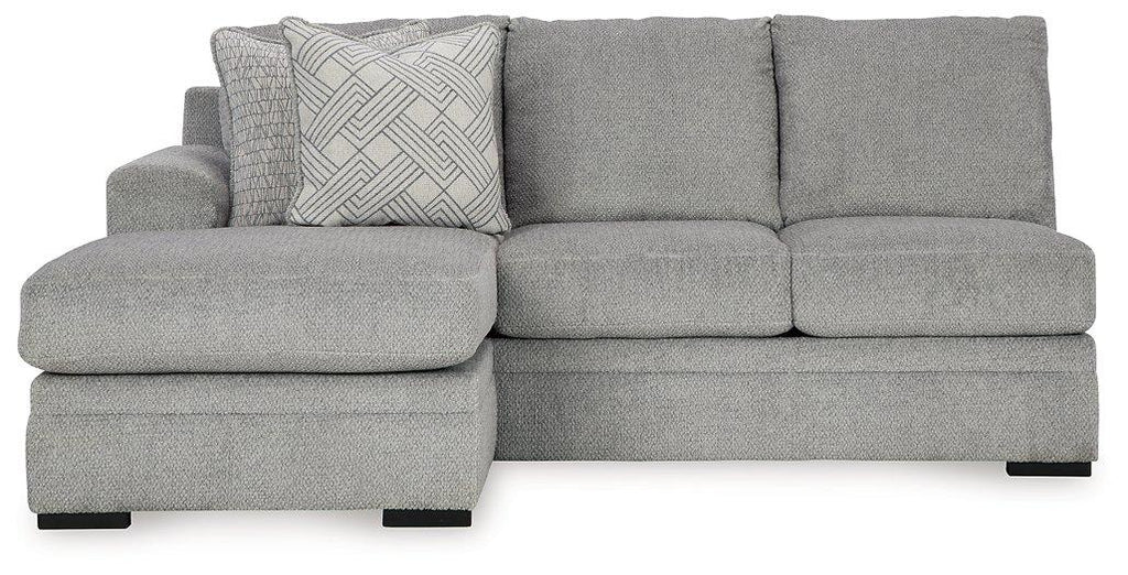 Don’t be limited by a lack of space. This sectional makes family movie nights and get-togethers with friends all the more cozy. With its double-chaise configuration, everyone has a spot to lounge. A trendy gray hue offers the contemporary style you crave. So sit back and relax—this functional piece is ready to indulge you with everyday comfort.