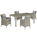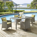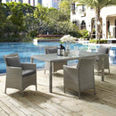Refresh your alfresco space with the Conduit Outdoor Patio Dining Collection. Bringing transitional style with contemporary modern flair to any outdoor area, Conduit features a powder-coated aluminum frame wrapped in synthetic UV-resistant wicker rattan. Foam padded cushion and waterproof cover offer a comfortable seat while dining or entertaining. All-weather and long lasting, this versatile outdoor Collection creates a serene setting for your morning tea, sunny lunch, sunset cocktail, and everything in between.