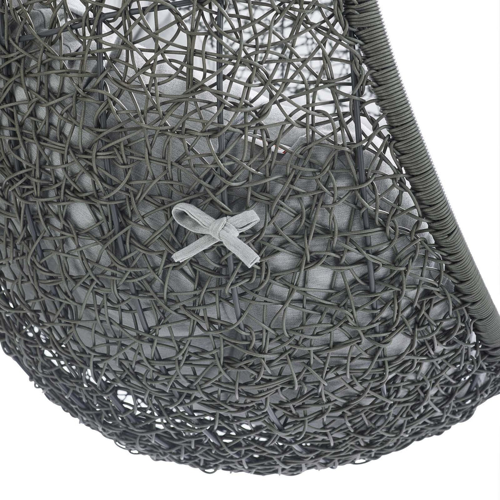 Escape to an exotic island of serenity with the Hide Swing Chair. Made with a luxurious synthetic rattan weave and plush all-weather Sunbrella� fabric cushion, Hides make it easy to immerse yourself in a good book. Hide comes with a sturdy powder-coated steel frame and hanging chain apparatus that works well to enliven your patio, backyard, porch, or poolside d�cor. Stand-alone swing hammocks are also popularly used in indoor lounge, living, or bedroom spaces. Hide is weather and UV resistant.
