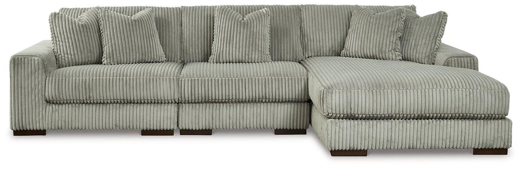 Plush and posh. Showcase your eye for on-trend texture with the statement-making cord upholstery of this sectional with chaise. Its stunningly soft fabric entices in a warm neutral hue, complementing contemporary color palettes. Sink into the cushions and plan to stay a while—this cozy living room centerpiece highlights your high-end approach to comfort and style.