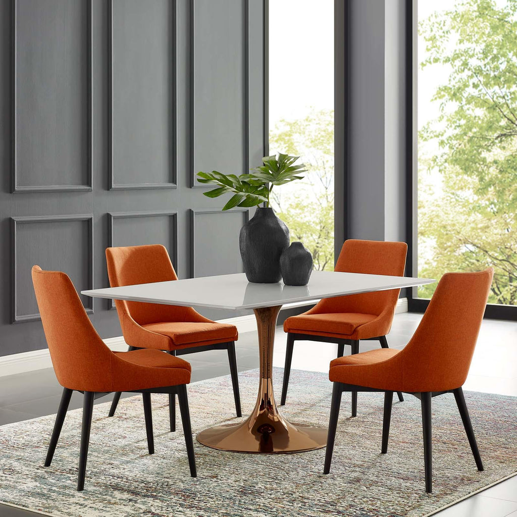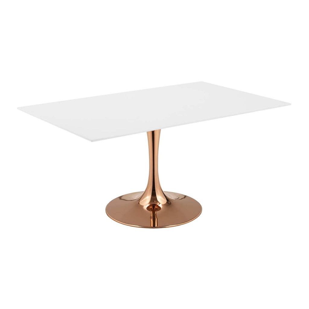 Reflecting a seamless organic shape and timeless form, the Lippa dining table has become a symbol of modernism for over the past 60 years. Before its release, homes were filled with clunky remnants of an industrial age long gone by. But in order to advance into the new world, homes first had to transition from the traditional table, into a piece that connoted progress. The base and dimensions are true to the original specifications, while the table�s square white top and metal tapered base are carefully lacquered with a scratch and chip-resistant finish.