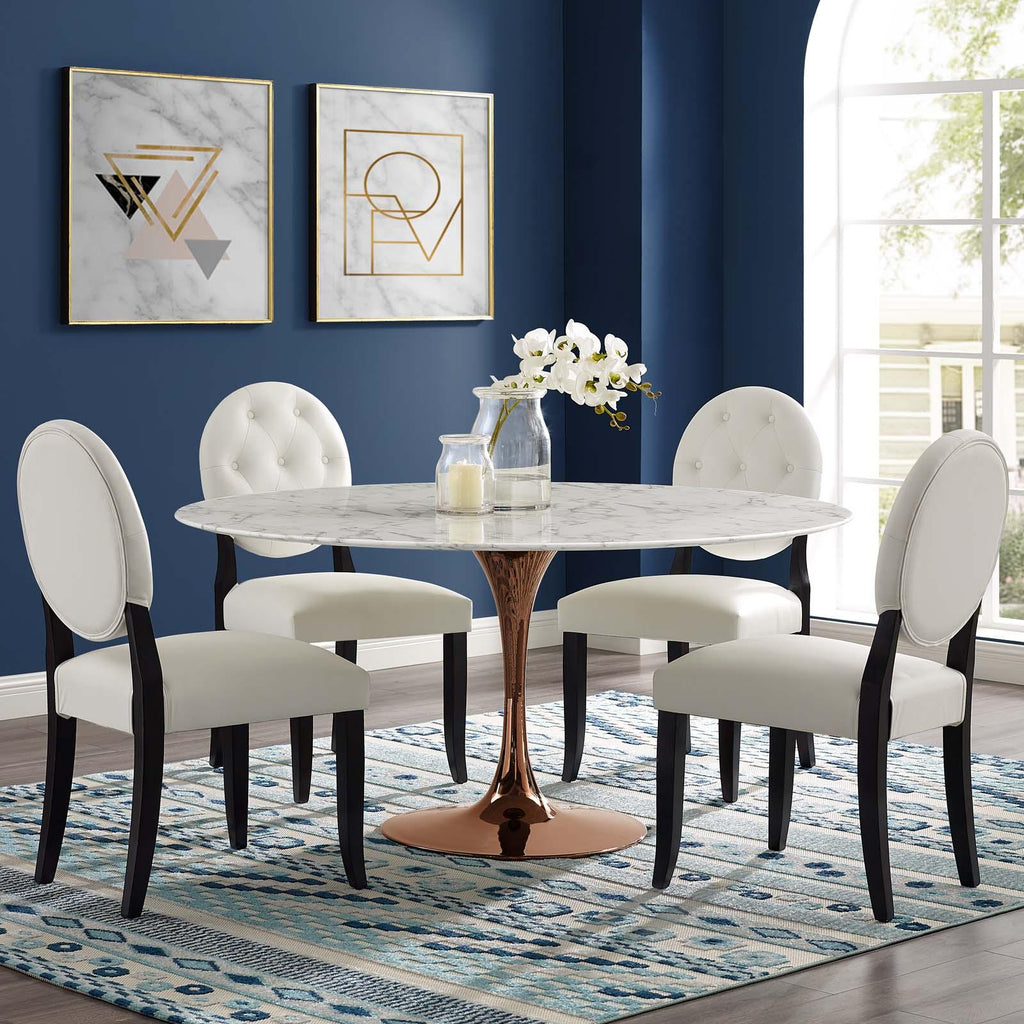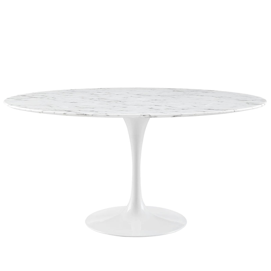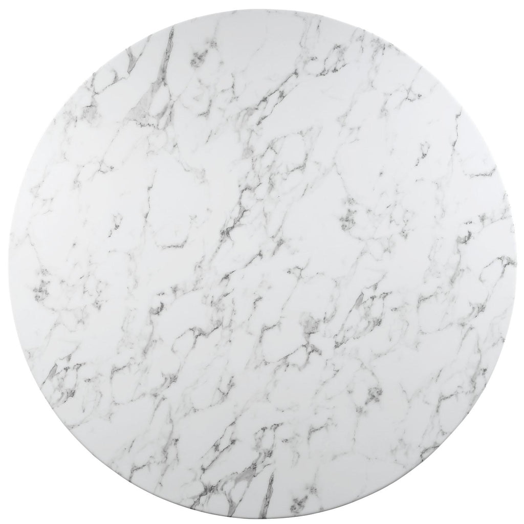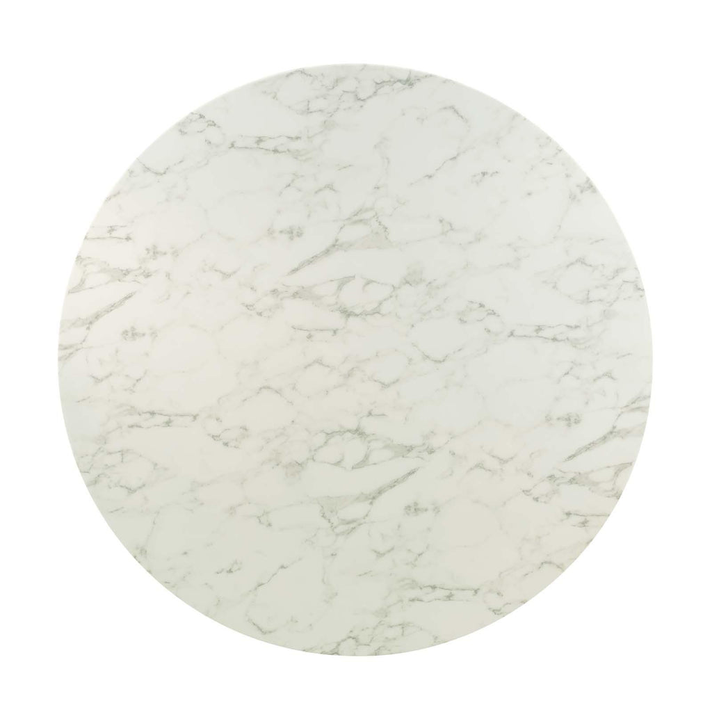 Reflecting a seamless organic shape and timeless form, the Lippa dining table has become a symbol of modernism for over the past 60 years. Before its release, homes were filled with clunky remnants of an industrial age long gone by. But in order to advance into the new world, homes first had to transition from the traditional square table, into a piece that connoted progress. The base and dimensions are true to the original specifications, while the table�s circular artificial marble top, and tapered metal base, are carefully lacquered with a scratch and chip resistant finish.