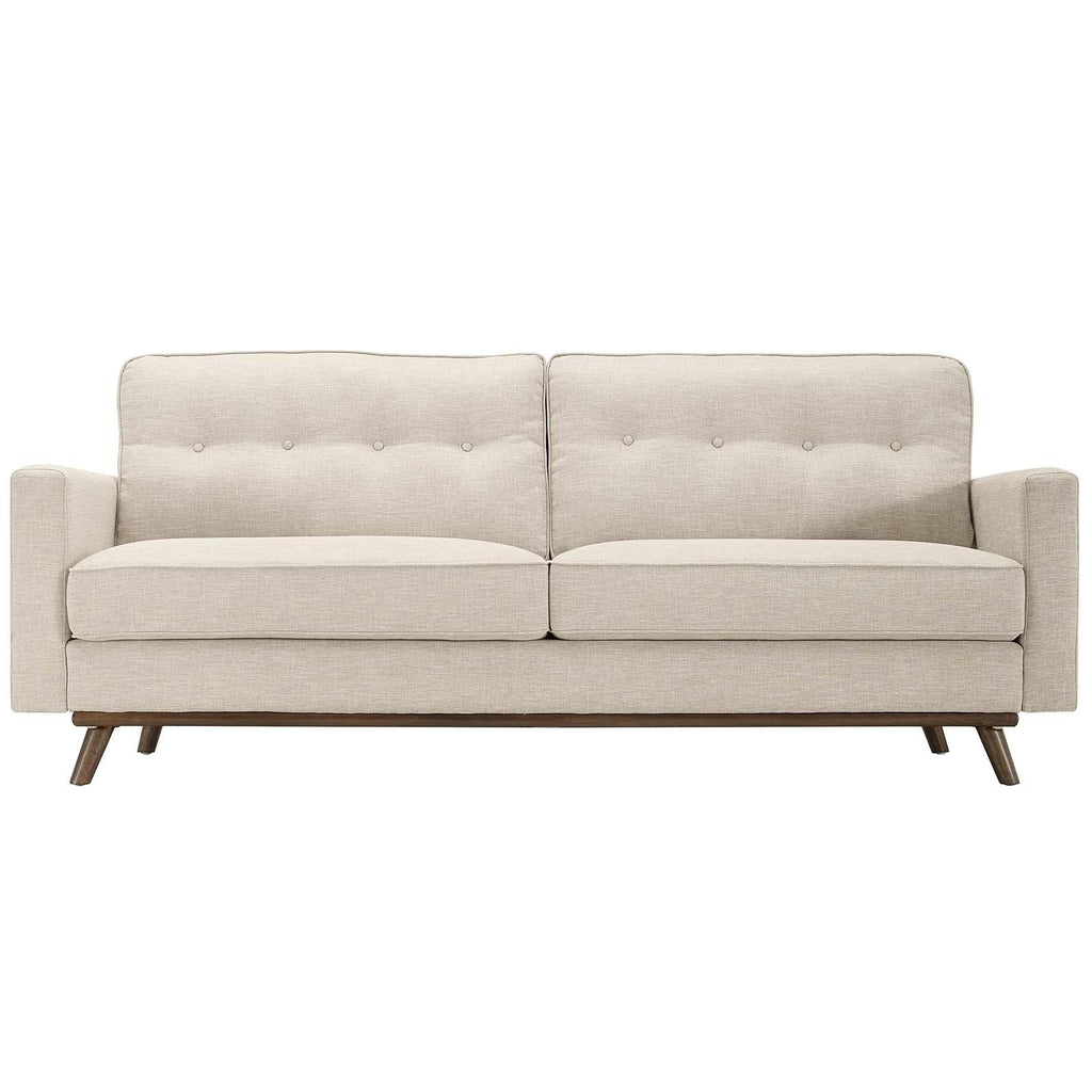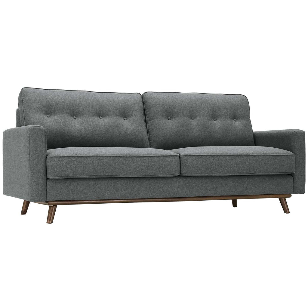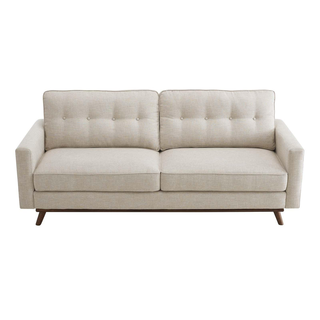 Experience modern-day convenience with Prompt. A stylish addition to your living room, office, or small living space, Prompt is a cozy mid-century modern sofa made with dense foam padding, upholstered in soft polyester fabric, and positioned on a walnut stained wood frame with splayed legs and non-marking foot caps. With a comfortable yet tailored profile, this living room sofa ships directly to your home or apartment in a compact box, and easily unpacks to become a favorite lounge spot in your home. Prompt beckons guests to sit and stay a while with linear button tufting and subtle welting that grants this modern sofa an approachable appeal. Sofa Weight Capacity: 1102 lbs.