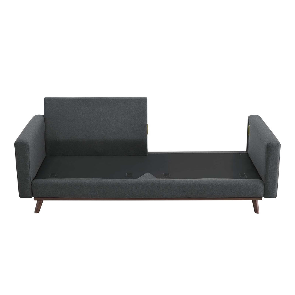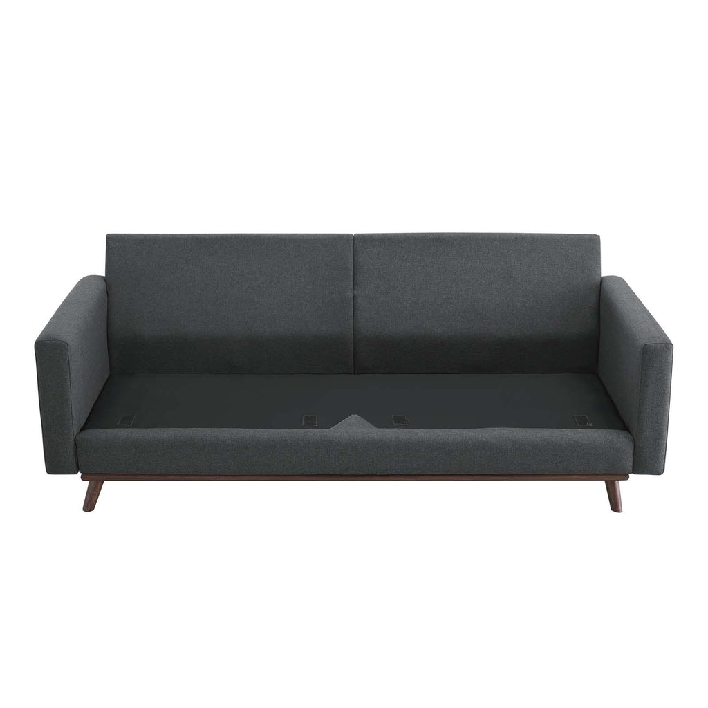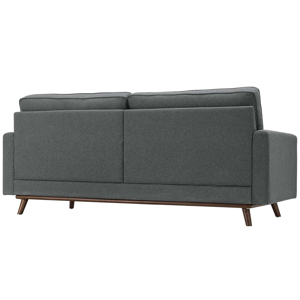 Experience modern-day convenience with Prompt. A stylish addition to your living room, office, or small living space, Prompt is a cozy mid-century modern sofa made with dense foam padding, upholstered in soft polyester fabric, and positioned on a walnut stained wood frame with splayed legs and non-marking foot caps. With a comfortable yet tailored profile, this living room sofa ships directly to your home or apartment in a compact box, and easily unpacks to become a favorite lounge spot in your home. Prompt beckons guests to sit and stay a while with linear button tufting and subtle welting that grants this modern sofa an approachable appeal. Sofa Weight Capacity: 1102 lbs.