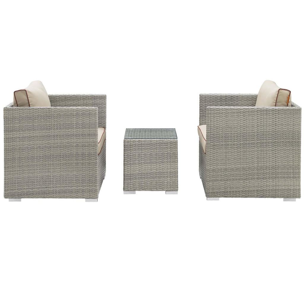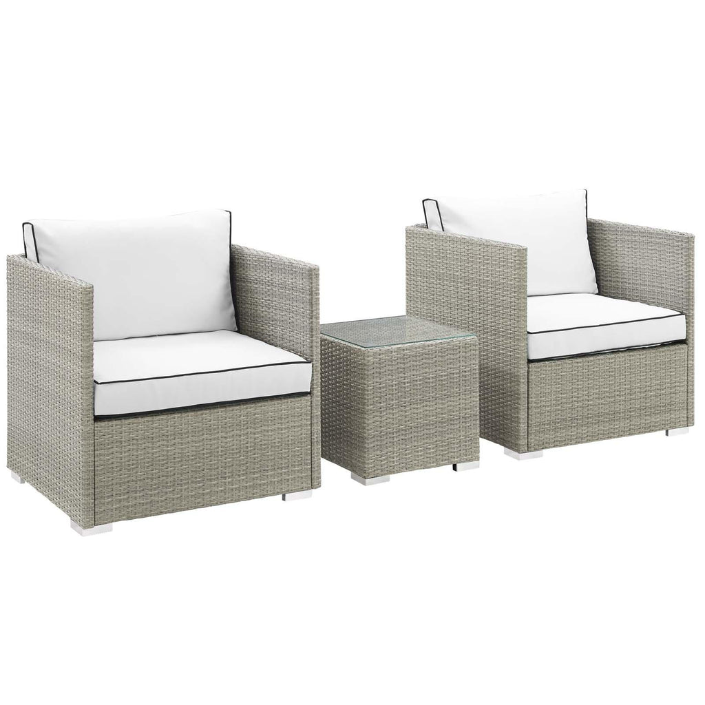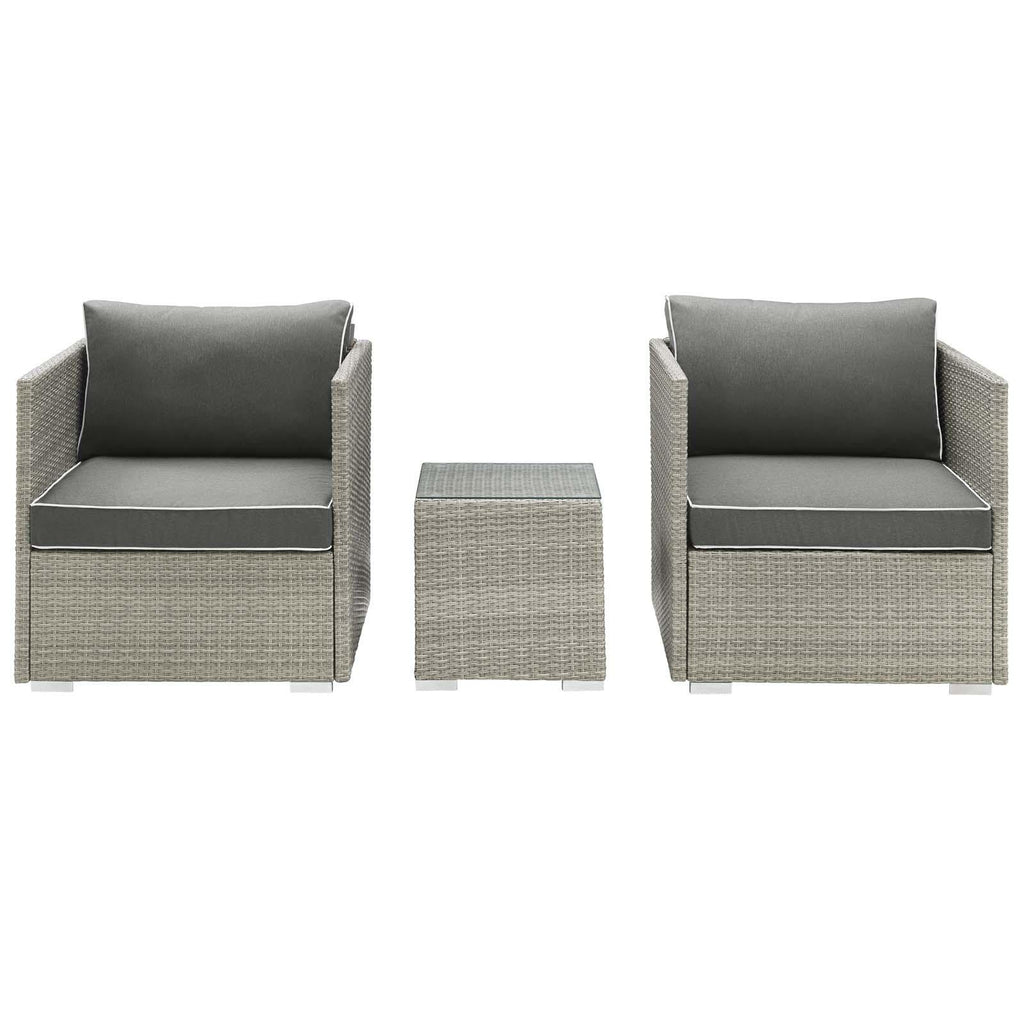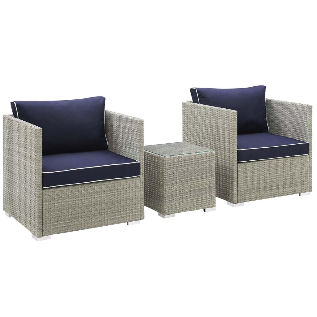 Enjoy the outdoors while benefiting from style and comfort. Repose offers a detailed tan and gray synthetic rattan weave with UV protection for eye-catching appeal and durability, plush 4� thick all-weather polyester cushions with contrasting color French piping, non-marking foot pads, and sturdy powder-coated aluminum framed seats and ottomans that support up to 331 pounds each. Subtle style defines the Repose outdoor sectional collection making it a natural choice for enhancing your patio, backyard, or poolside gatherings.