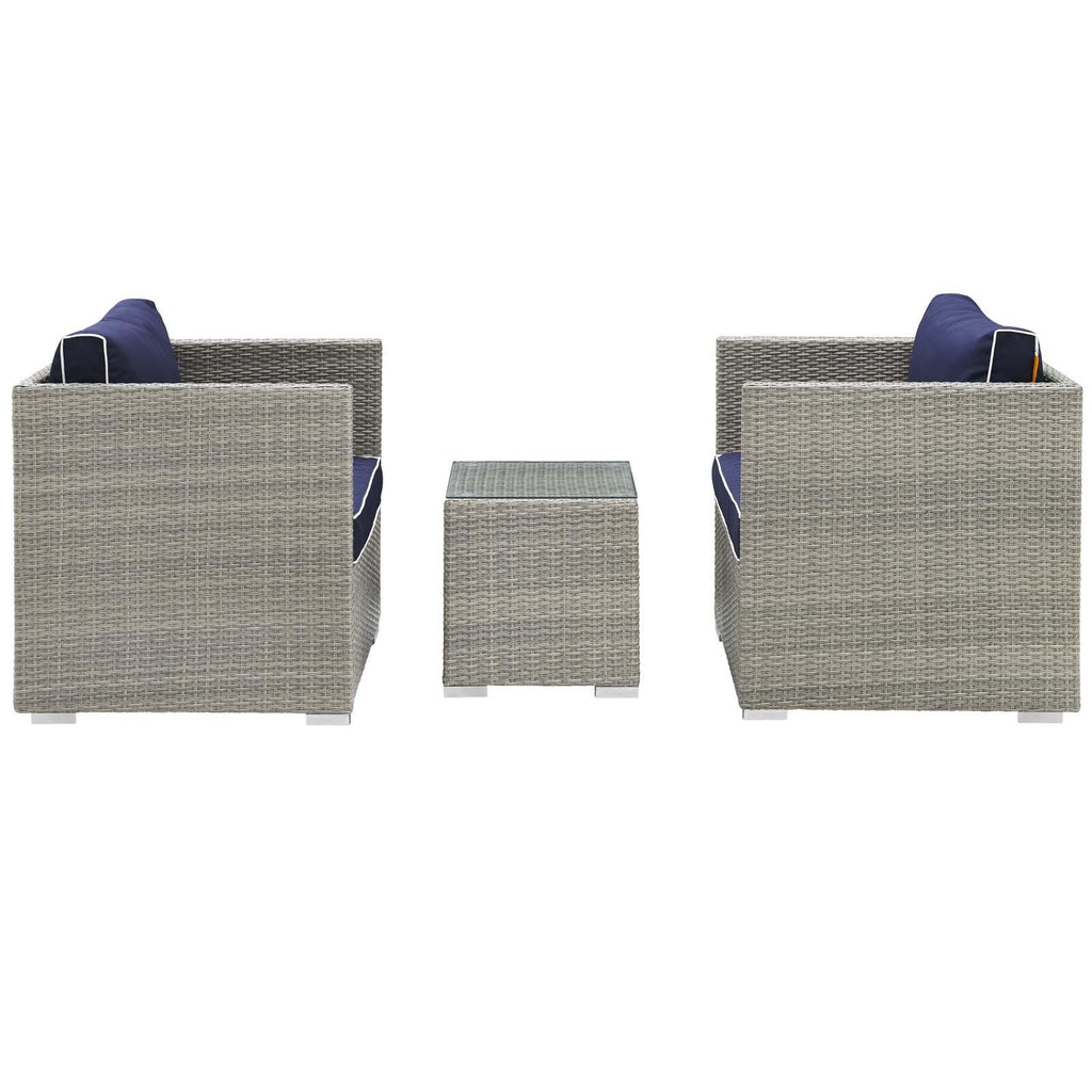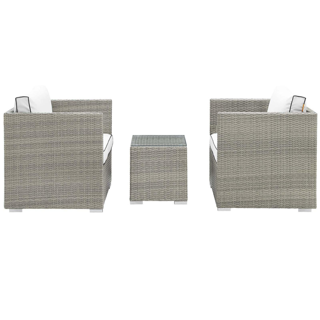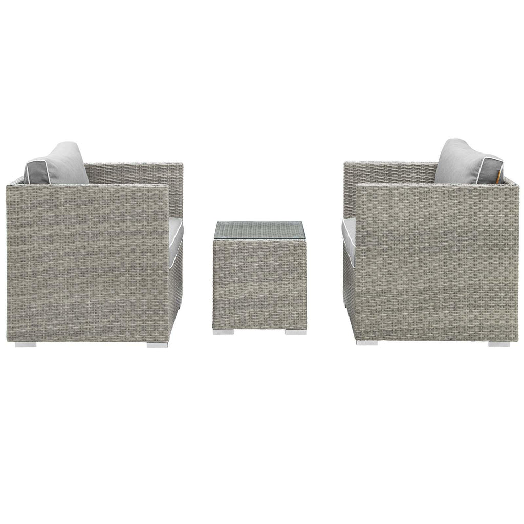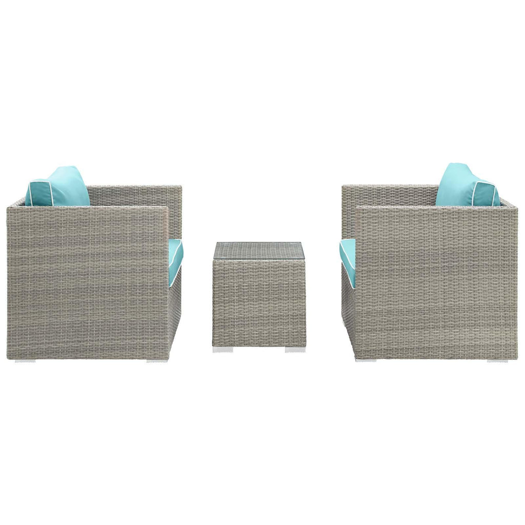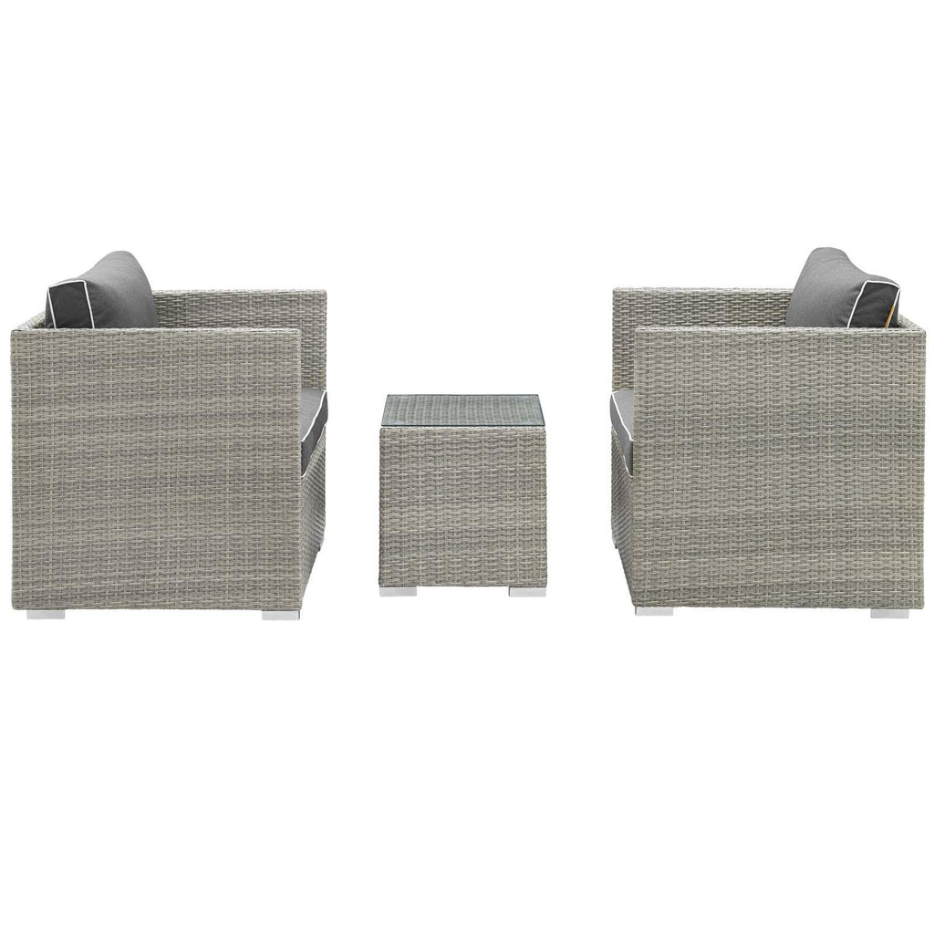 Enjoy the outdoors while benefiting from style and comfort. Repose offers a detailed tan and gray synthetic rattan weave with UV protection for eye-catching appeal and durability, plush 4� thick all-weather polyester cushions with contrasting color French piping, non-marking foot pads, and sturdy powder-coated aluminum framed seats and ottomans that support up to 331 pounds each. Subtle style defines the Repose outdoor sectional collection making it a natural choice for enhancing your patio, backyard, or poolside gatherings.