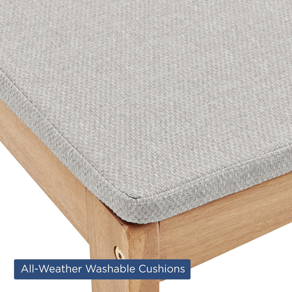 Refresh your outdoor decor with the sleek Riverlake 5 Piece Outdoor Patio Wood Bar Set which features the Riverlake 55" Table and four Riverlake Bar Stools. Crisp lines define this solidly constructed FSC certified Ash wood bar set. This modern outdoor bar set makes it easy to celebrate life's special moments. Perfect for the patio, deck, porch, or poolside.