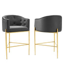 Bring luxe elegance to your dining room or kitchen space with the Savour Tufted Performance Velvet Bar Stool. Featuring a sweeping silhouette and updated club chair design, this velvet bar stool is suited for a pub table or kitchen counter. This stool is upholstered in stain-resistant performance velvet upholstery and features dense foam padding to offer a comfortable seat while dining. Resting on a chrome gold tubular stainless steel frame, this versatile bar stool has interior button tufting and a charming curved shape. Bar Stool Weight Capacity: 300 lbs. Seat Height From Floor: 29"