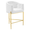 Bring luxe elegance to your dining room or kitchen space with the Savour Tufted Performance Velvet Counter Stool. Featuring a sweeping silhouette and updated club chair design, this velvet stool is suited for a counter-height pub table or kitchen island. This counter-height bar stool is upholstered in stain-resistant performance velvet upholstery and features dense foam padding to offer a comfortable seat while dining. Resting on a chrome gold tubular stainless steel frame, this versatile counter stool has interior button tufting and a charming curved shape. Seat Height From Floor: 26"H; Counter Bar Stool Weight Capacity: 300 lbs.