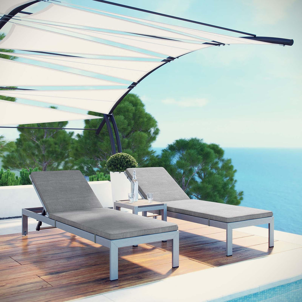Maintain clean lines with the Shore Outdoor Sun Lounger. Strong and durable, relax as you choose from four available recline positions while relaxing on machine washable all-weather cushions, or sunbathe while lying flush on Shore�s breathable Textilene� mesh. Made with an anodized brushed aluminum frame, Shore is a breeze to assemble, comes with clear wheels for easy mobility on the top end, and non-marking black plastic foot caps under the bottom two support legs. Chic and minimalist, the Shore Outdoor Sun Lounger is a piece built to last with the comfort and versatility you�ve been looking for in an outdoor lounger.
