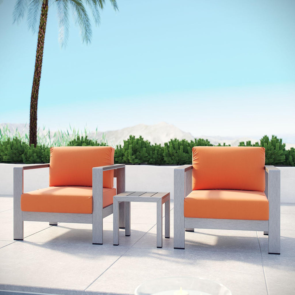 Maintain clean lines with the Shore Outdoor Patio Sun Lounger and Side Table Set. Strong and durable, relax as you choose from four available recline positions or sunbathe while lying flush. Made with an anodized brushed aluminum frame and tone-on-tone grays, Shore Patio Chaise Lounge and Side Table set is a breeze to assemble, comes with clear wheels for easy mobility on the top end, and non-marking black plastic foot caps under the bottom two support legs. Chic and minimalist, the Shore Outdoor Chaise Lounge and Side Table set is a piece built to last with the comfort and versatility you�ve been looking for in an outdoor sunbathing area.