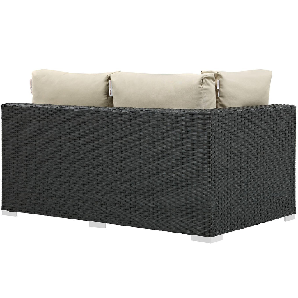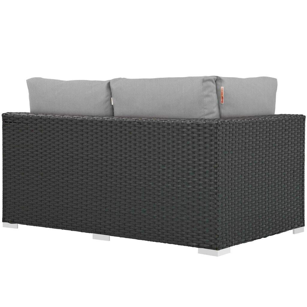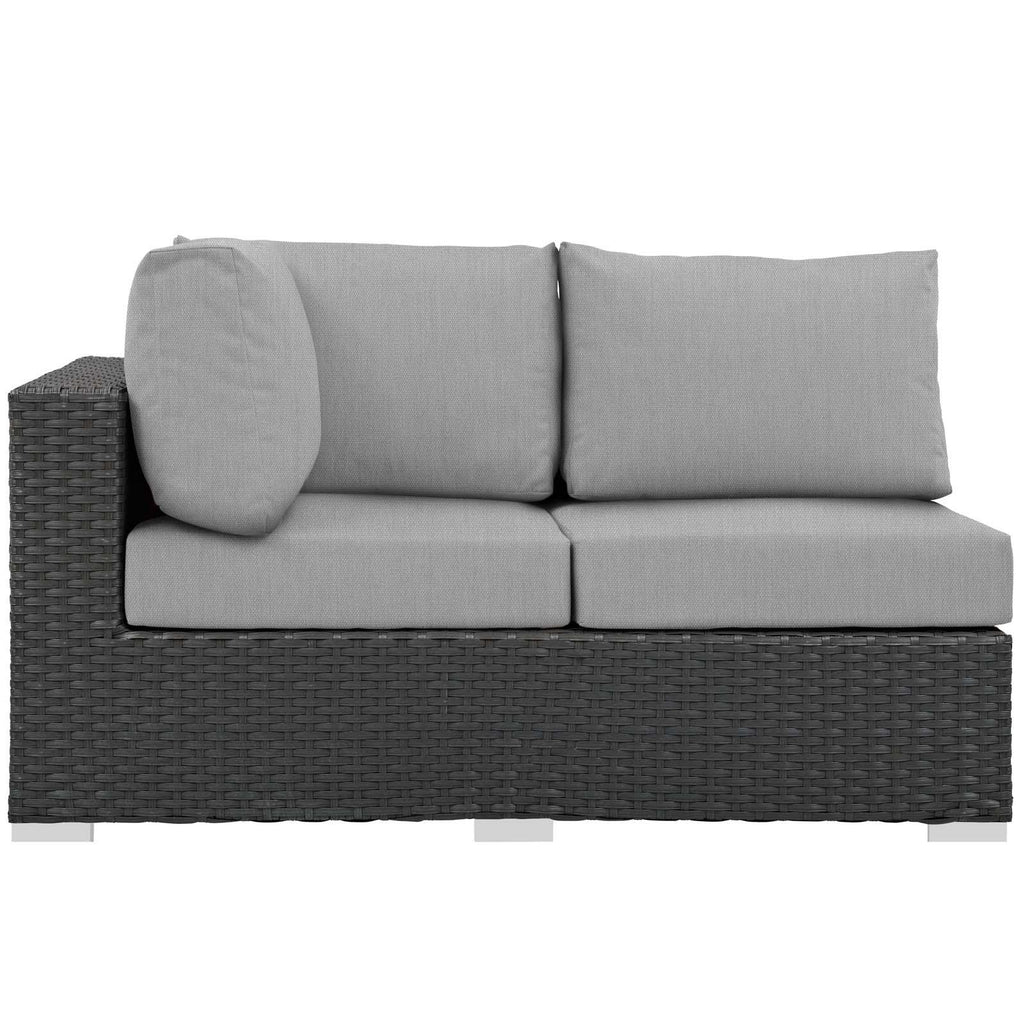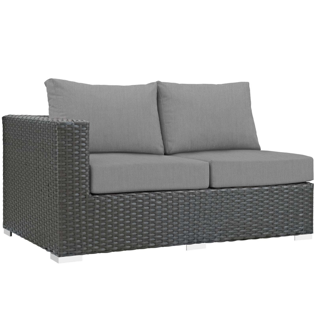 Outfit your patio with an imaginative Sojourn Outdoor Patio Furniture series. The Sojourn Outdoor Patio Left Arm Loveseat offers a robust seating experience that easily rearranges according to usage. Outfitted with industry-leading Sunbrella� fabric cushions, synthetic rattan weave, UV protection, powder-coated aluminum frame, immensely enjoy your outdoor time with an outdoor wicker sectional loveseat that enhances patio, backyard, or poolside areas. This installment of the series is an Outdoor Patio Left Arm Loveseat.