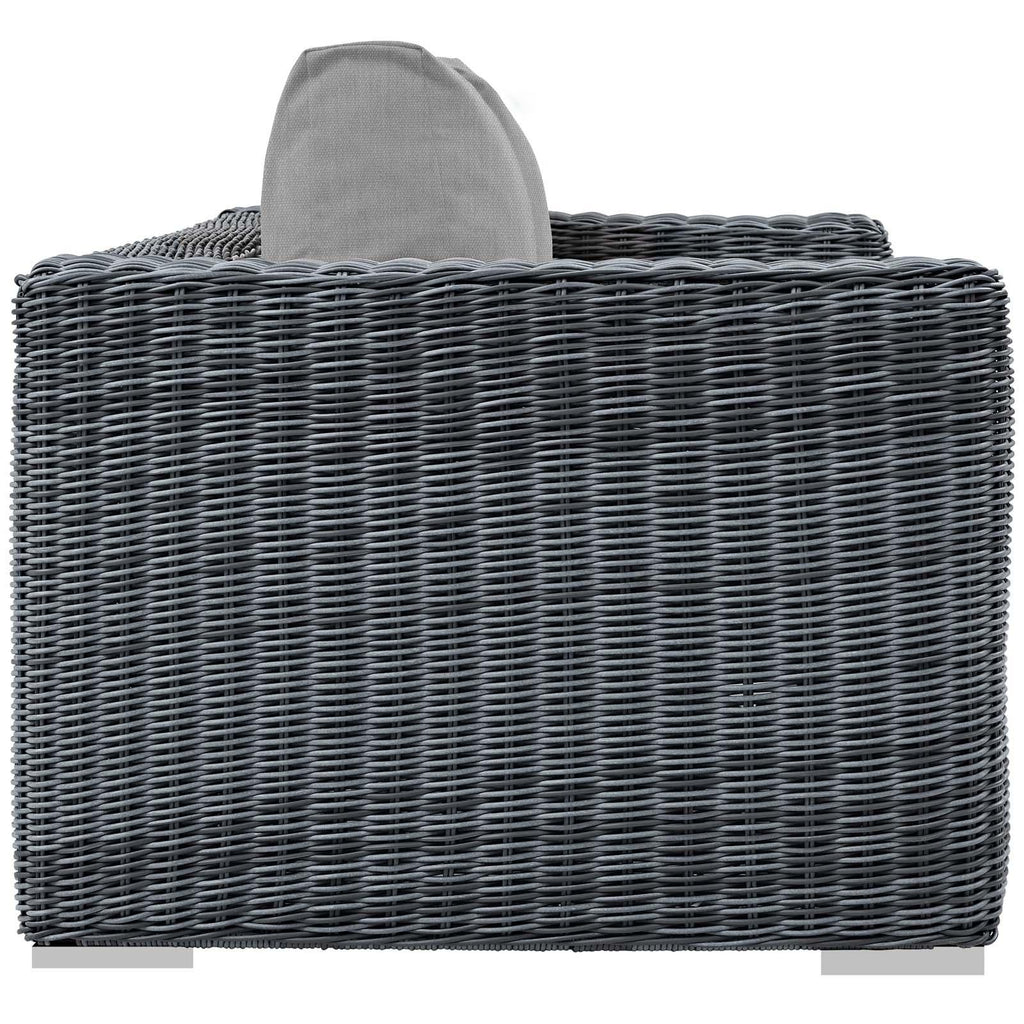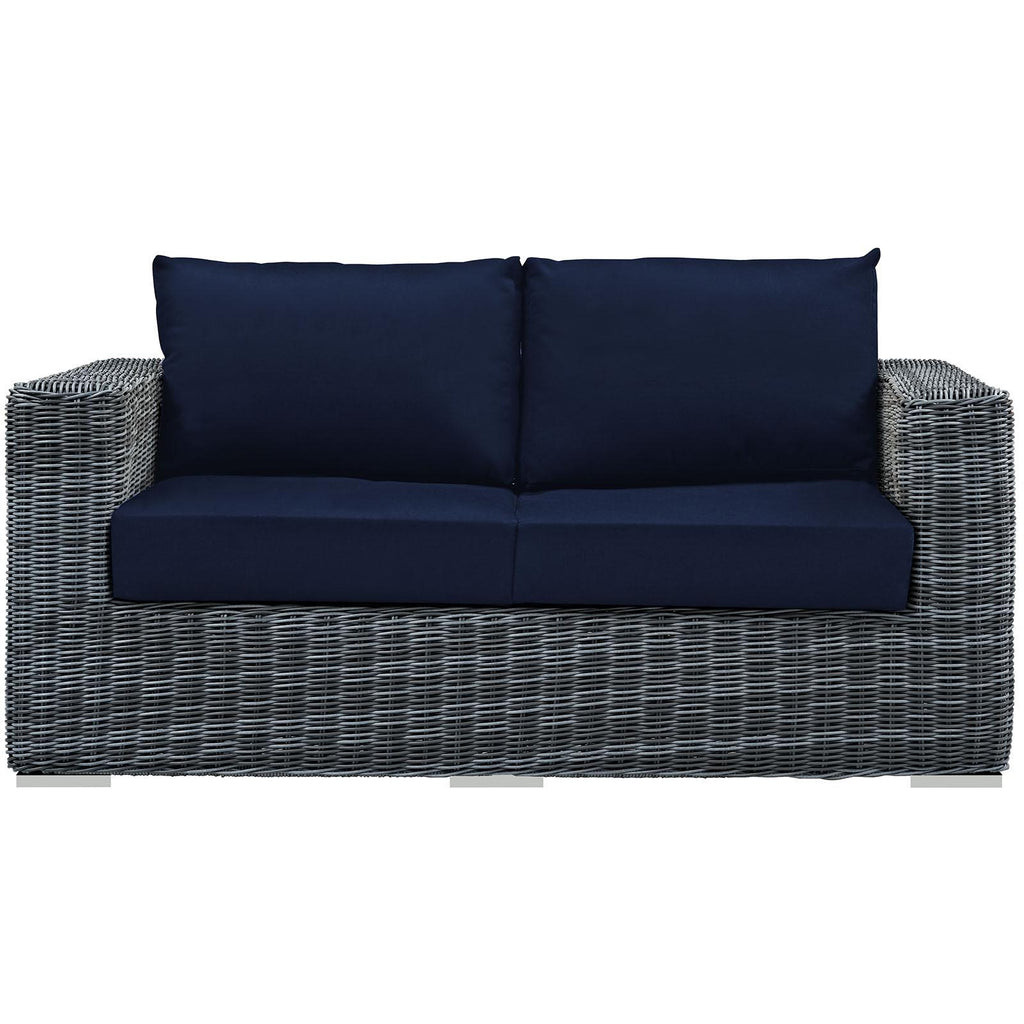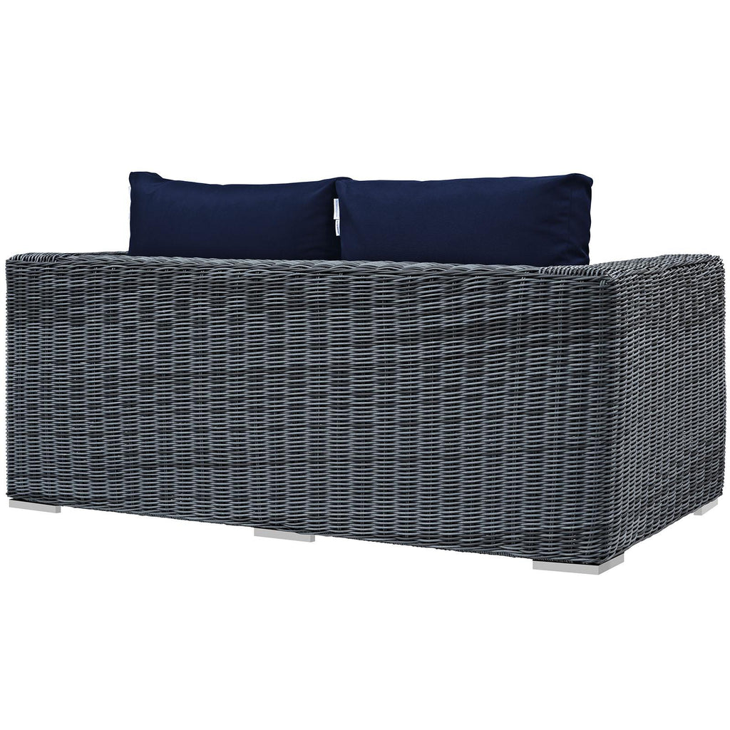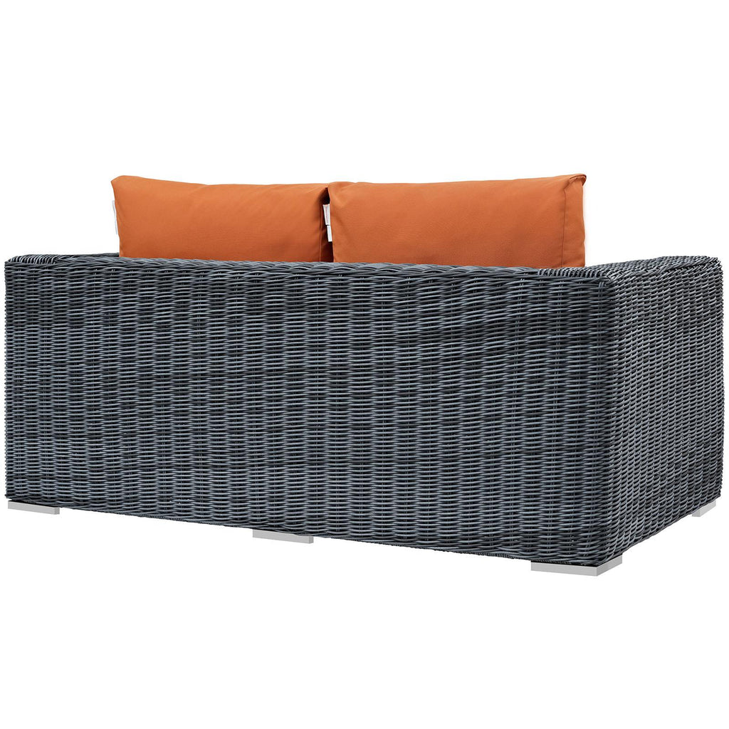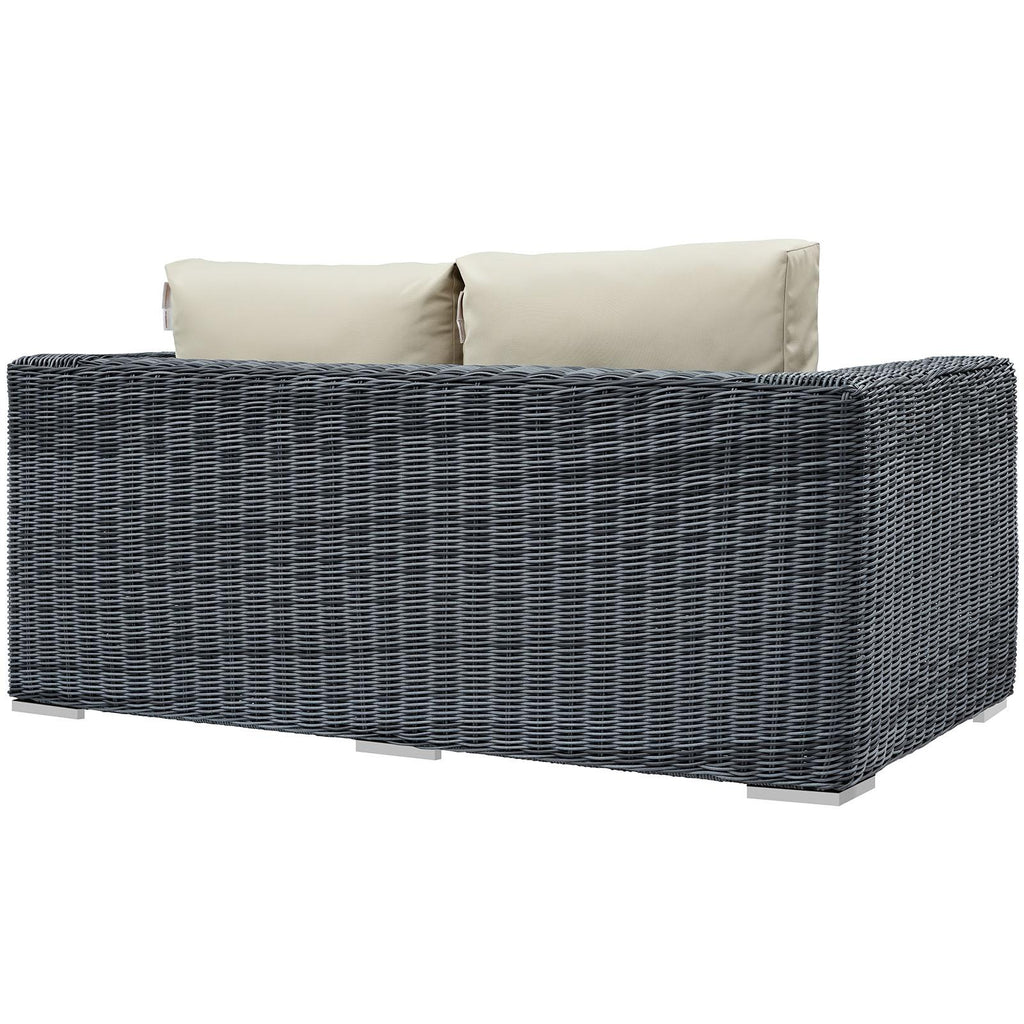 Experience the outdoors with exceptional comfort and quality. Summon Outdoor Patio Loveseat offers an exquisite two-tone synthetic rattan weave, plush all-weather cushions with industry-leading Sunbrella� fabric, UV protection, and a sturdy powder-coated aluminum frame. Featuring an elegant modern look, Summon Patio Loveseat is part of an avant-garde outdoor sectional series well-equipped for enhancing patio, backyard, or poolside gatherings. This installment of the series is an Outdoor Patio Loveseat.