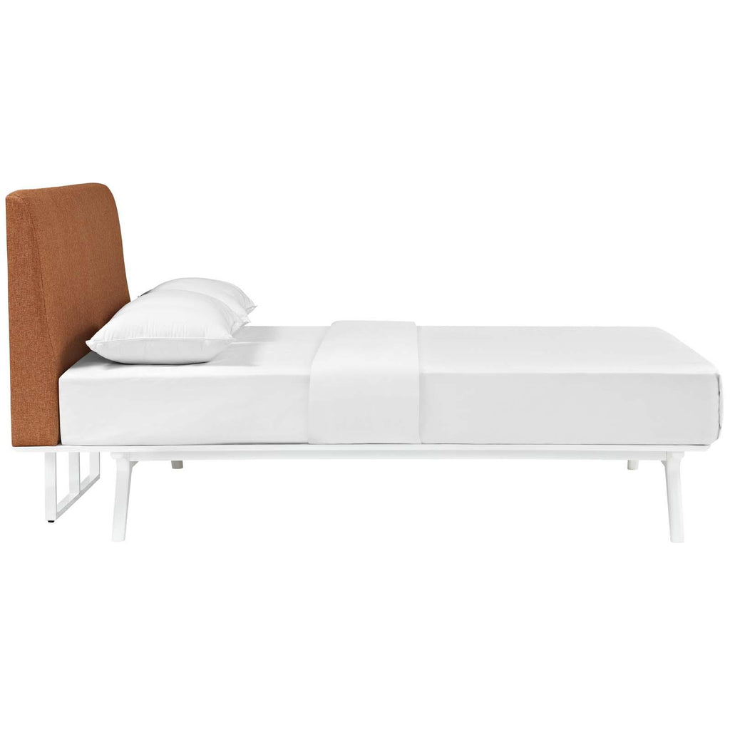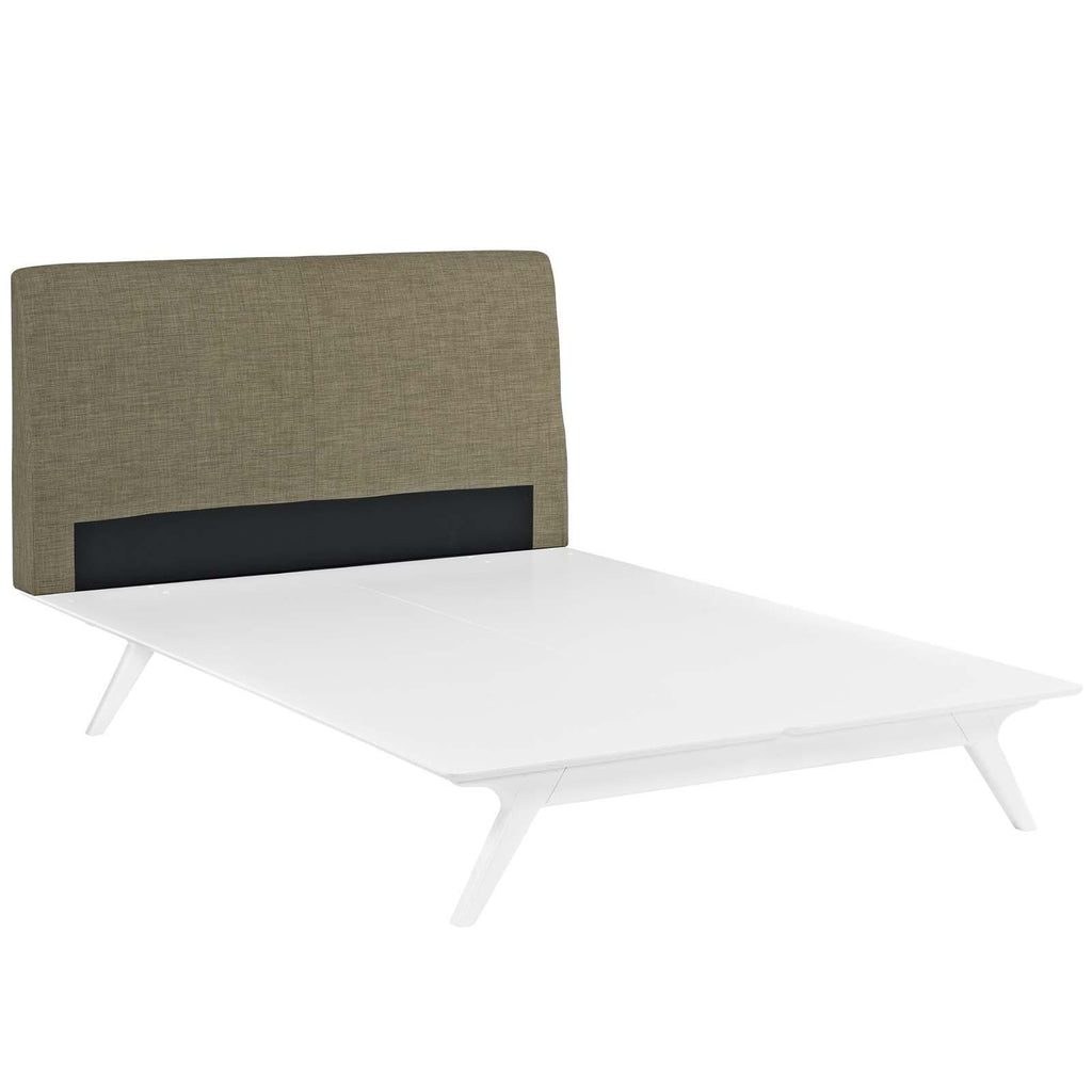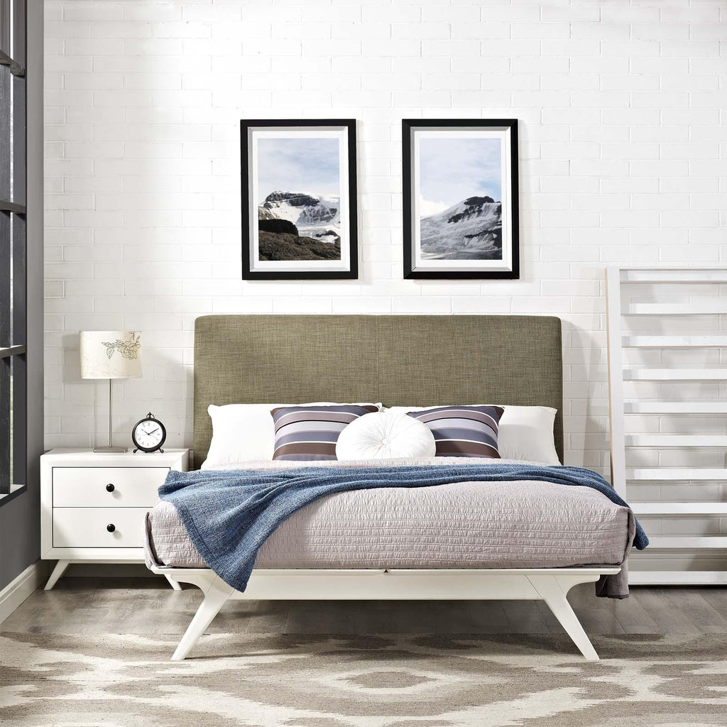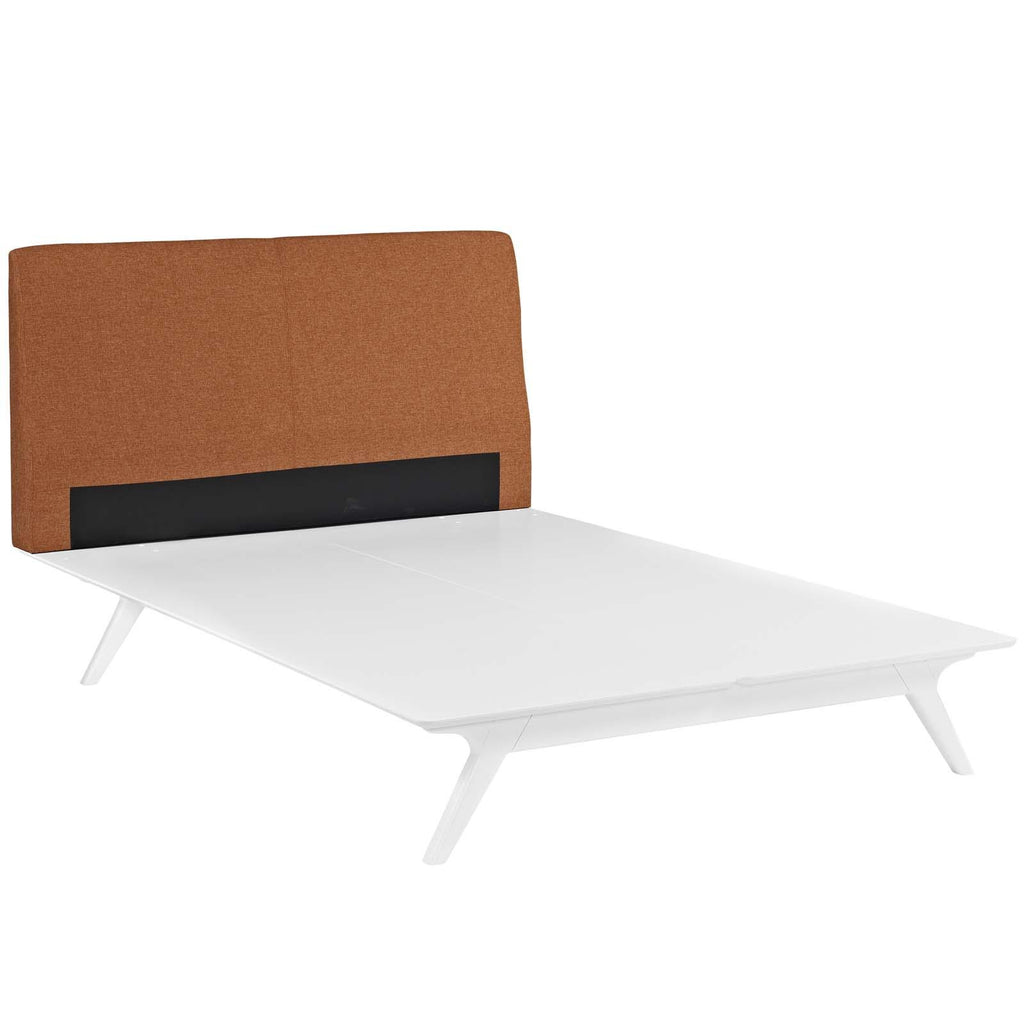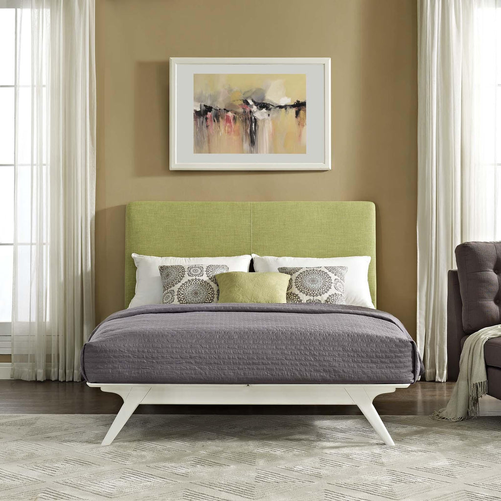 Transform your ordinary bedroom arrangements into a more compelling decor with the Tracy queen size platform bed. Made of sturdy MDF boards, Tracy with its open design and platform leg support, proves that elegance doesn�t need to come at the expense of simplicity. Finely upholstered with a foam padded fabric headboard, Tracy is an easy to maintain toffee brown stained piece that admirably delivers both comfort and style. Tracy requires assembly, and should be spot cleaned only. Headboard included. Queen size mattress not included. The Tracy queen size platform bed does not need a boxspring.