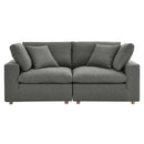 A haven for cozy relaxation, Commix features plush comfort, clean-lined design, and spacious profile, that makes an attractive statement in the modern home. Upholstered in soft polyester and linen fabric, this living room set comes with solid wood construction and cotton and down cushions for a luxurious sink-in feel. Commix comes with generously padded down feather and cotton cushions, and padded foam bases, making this sectional sofa collection perfect for the living room, family room, or game room. Made for sprawling out or curling up, Commix beckons you and guests to sit and stay a while. Includes plastic foot glides. Weight Capacity: 331 lbs.
