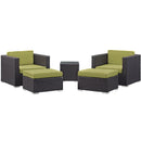 Gather stages of sensitivity with the Convene Outdoor Sectional series. Made with a synthetic rattan weave and a powder-coated aluminum frame, Convene Patio Lounge Armchair and Ottoman set is a versatile outdoor collection that shifts and combines according to the spontaneous needs of the moment. Outfitted with all-weather fabric cushions, this deck chair leaves a positive impression on friends and family while enhancing your patio, backyard, or poolside repast in this series of palpable distinction. This installment of the series is an Outdoor Patio Sectional Sofa Set.