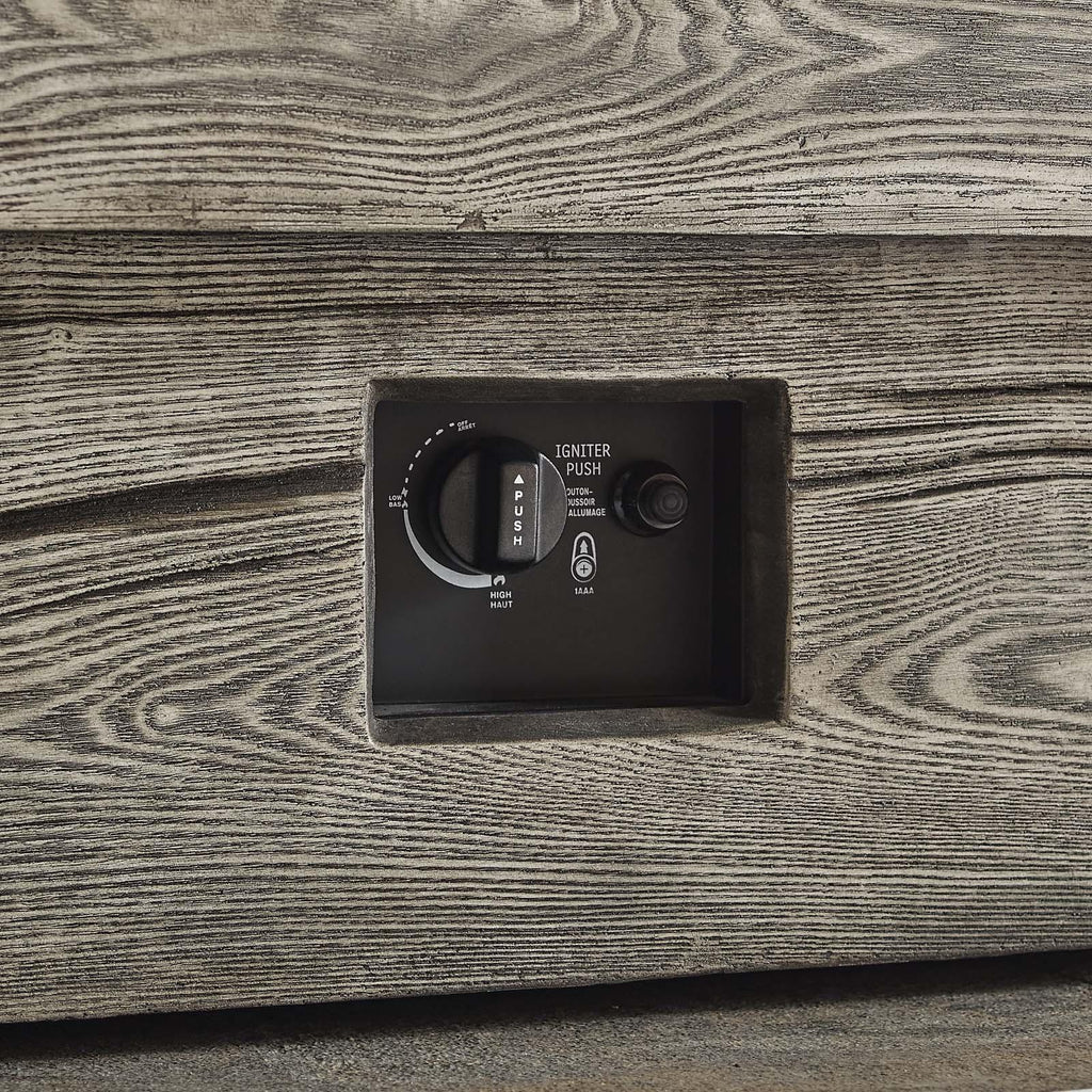 Capture a lakeside or cabin setting with the Manteo 70" Outdoor Patio Fire Pit Table. Enjoy the flickering flames from this solid magnesium oxide molding coated with a simulated driftwood finish. Tempered glass beads fill the center of the rectangular fire pit, lighting up surrounding silhouettes with a cozy golden glow. This propane gas fire table with a 50,000 BTU burner creates a smoke-free flame, is CSA certified, and burns up to 8 hours on high or up to 16 hours on low. Manteo comes with a protective PVC cover when not in use, and is easy to control for consistent heat with a simple turn of a knob and touch of an ignition button. Create a stylish and sturdy patio fire table, and enjoy your outdoor leisure time, with this versatile fire pit for your backyard, deck, lake house, patio, poolside, or porch. Equipped with non-marking foot caps, this outdoor fire pit table will update your patio decor with a rustic modern feel.