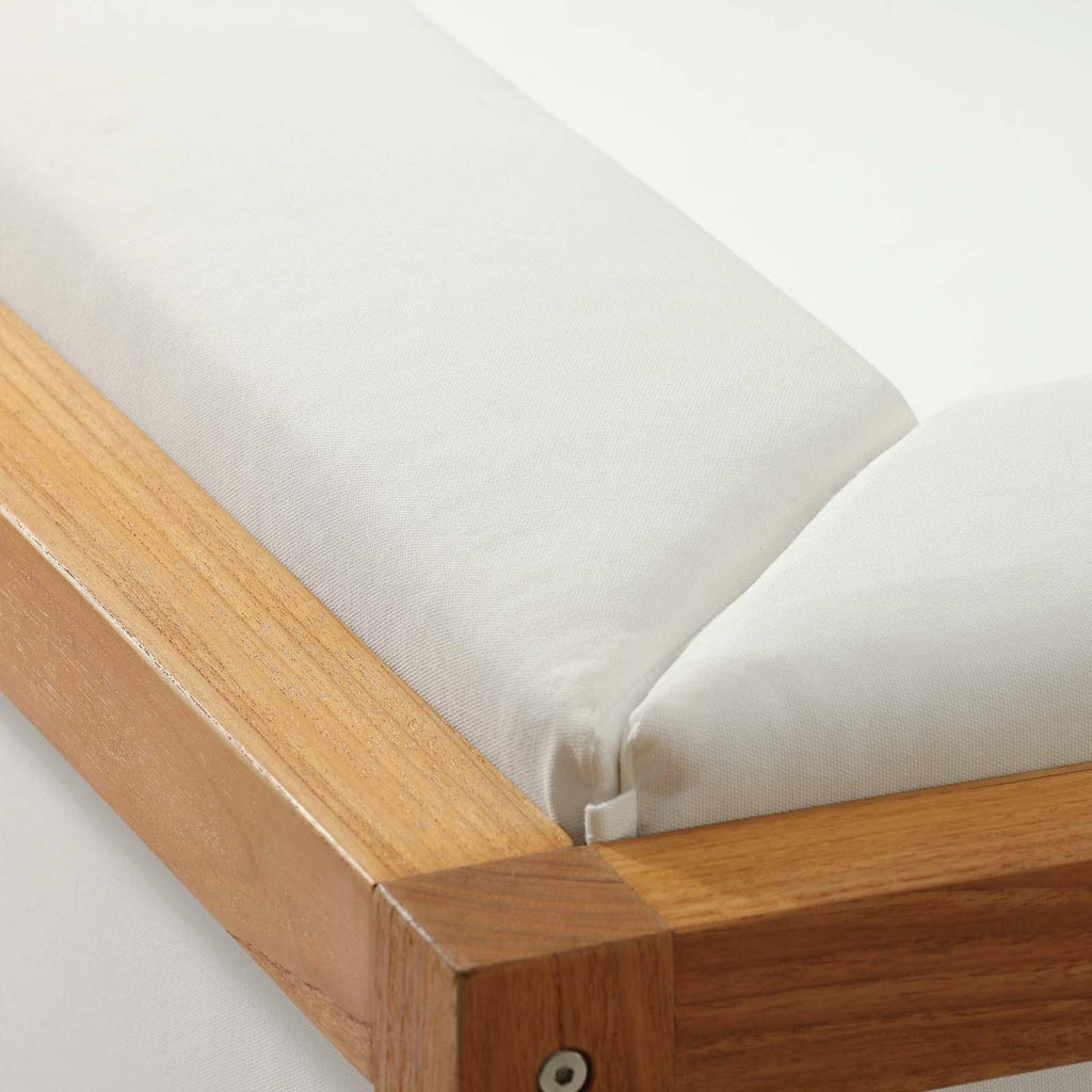 Experience wondrous sunsets and spirited al fresco dining with the Newbury Premium Grade A Teak Outdoor Patio Collection. Made of Premium Grade A Teak Wood, this teak sofa comes with machine-washable sun, stain, water, mildew, and fade resistant Sunproof� Fabric for long-lasting use. A versatile addition to balconies, backyards, patios, gazebos, poolside or garden spaces, the Newbury Collection comes with matching armchair, sofa, ottoman, coffee table, and accent chair selections for a durable outdoor teak set that comes with a variety of dining and casual living seating options. Complete with a spacious, contemporary design, this installment of the series is a sofa.