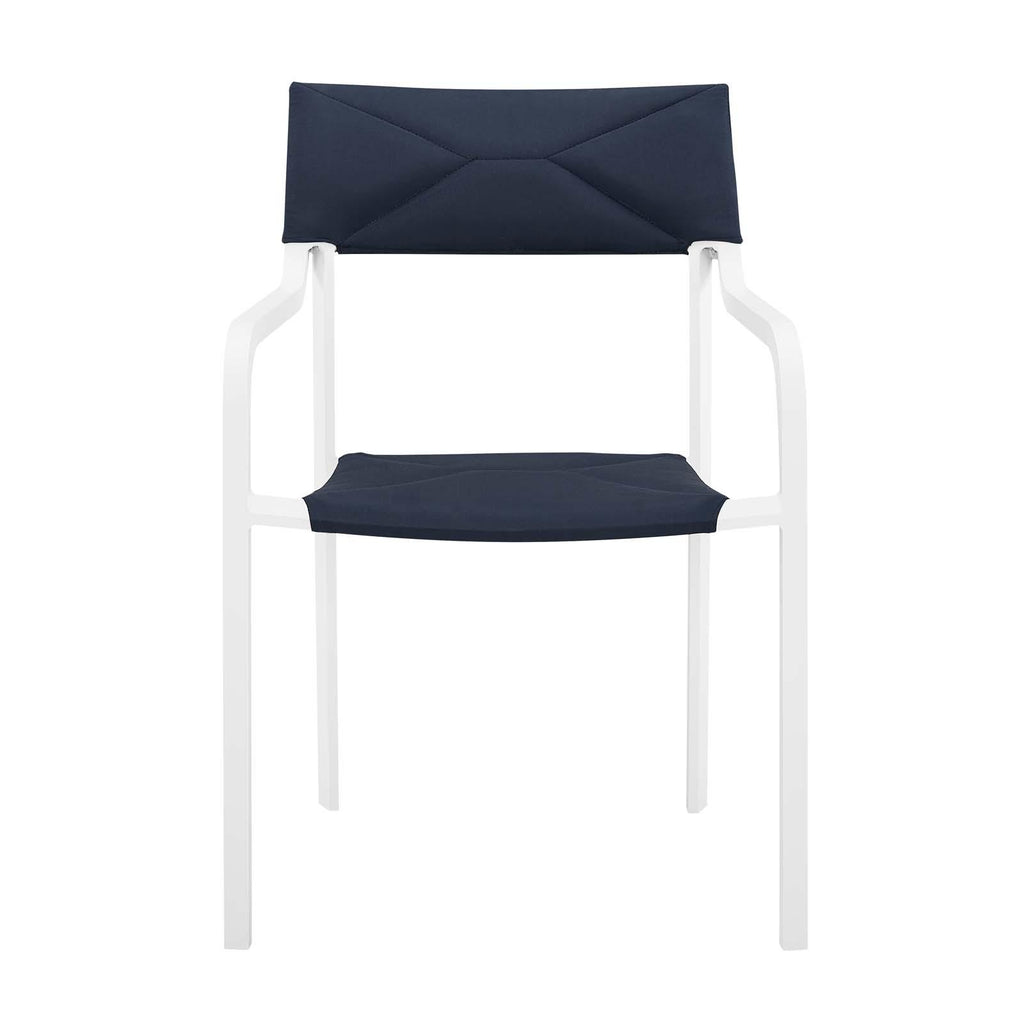 Introduce a sleek minimalist look to your outdoor furniture decor with the Raleigh 5 Piece Outdoor Dining Set. The set includes the Raleigh 59" Outdoor Patio Dining Table and four Raleigh Stackable Patio Chairs. Solidly constructed with a powder-coated aluminum frame, easy-to-clean white glazed tempered glass, and non-marking foot caps. Raleigh's foam padded seat and back come upholstered with all-weather UV resistant fabric, while a sturdy powder-coated aluminum frame creates a durable frame that is stackable for easy, compact storage. Whether gracing your patio, porch, deck, balcony, or backyard, this Raleigh Dining Set will complement your outdoor decor with ease.