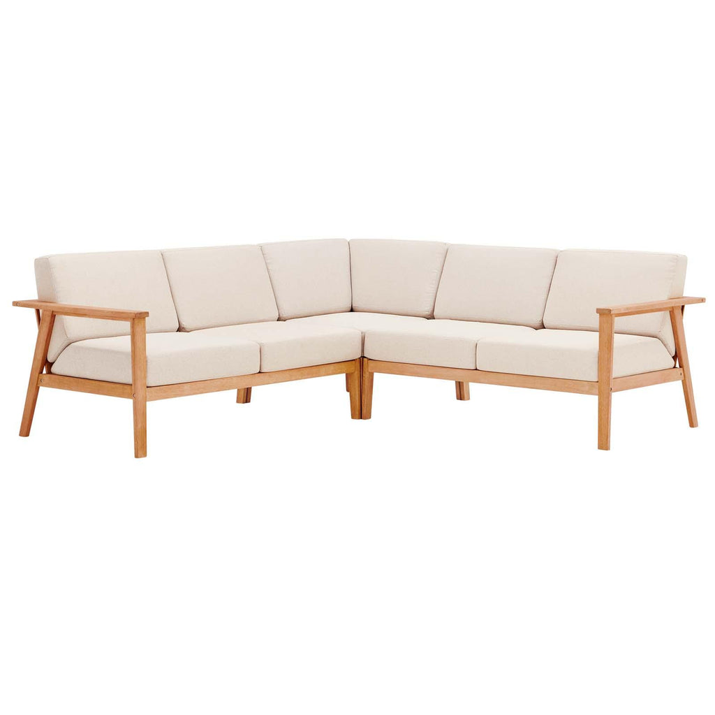 Enjoy dynamic outdoor furniture with the Sedona 3 Piece Eucalyptus Wood Sectional. Made of FSC certified eucalyptus wood, this three piece outdoor sectional features a gently reclining slatted back support with densely padded all-weather cushions. An outdoor furniture collection that will garner admiration from all who gather on your patio, porch, backyard, or deck, Sedona features crisp, clean lines.