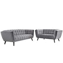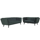 Generously update your d�cor with Bestow Performance Velvet Living Room Set. Uniquely designed with a striking broad profile, Bestow comes in soft, stain-resistant performance velvet polyester upholstery with dense foam padding and elegant button tufting. Sturdily positioned on splayed and tapered black finish wood legs with non-marking foot caps, Bestow boasts a bountiful living room seating design brimming with possibilities. With ample seat depth and overscaled frame, invite all your guests to sit comfortably in this 12" high back and arm rest collection perfect for mid-century, modern farmhouse or contemporary decors.
