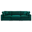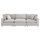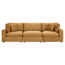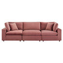 A haven for cozy relaxation, Commix features plush comfort, clean-lined design, and spacious profile, that makes an attractive statement in the modern home. Covered in stain-resistant performance velvet, this upholstered sofa comes with a solid wood construction and foam padded and duck down cushions for a luxurious sink-in feel. Commix features overstuffed down feather cushions that offer a feeling of relaxation and calming comfort while lounging, making it the perfect addition to the living room, family room, or game room. Made for sprawling out or curling up, Commix beckons you and guests to sit and stay a while. Includes plastic foot glides. Weight Capacity of Each Piece: 331 lbs.