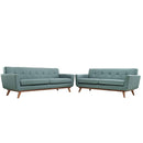 Gently sloping curves and large dual cushions create a favorite lounging spot. Whether plopping down after a long day at work, settling in with coffee and brunch, or entering a spirited discussion with friends, the Engage sofa is a welcome presence in your home. Seven tufted buttons create eye-catching appeal, adding depth that brings your sitting d�cor to center stage. Four cherry color rubberwood legs and frame supply a solid base to the comfortable upholstered material.