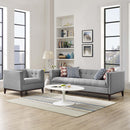Further your sensibilities with Serve. Elegantly inset with a central line of tufted buttons and fine polyester upholstery, Serve enhances an ambiance of exceptionalism with a refined design that spans the ages. Serve features dense foam cushioning, walnut stained wood legs with non-marking foot caps, and a supportive seating experience. This modern take on mid-century design is perfect for living rooms, lounge spaces, and reception areas.