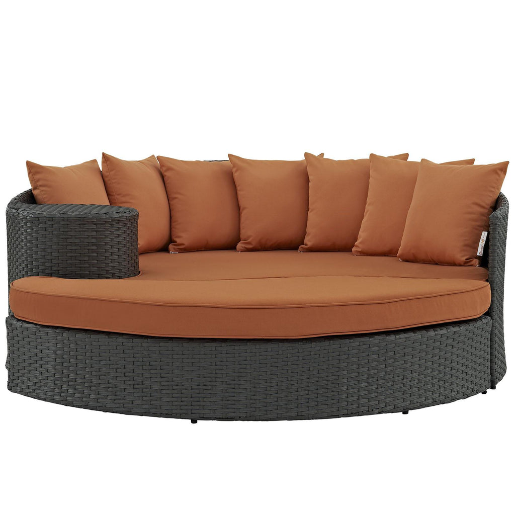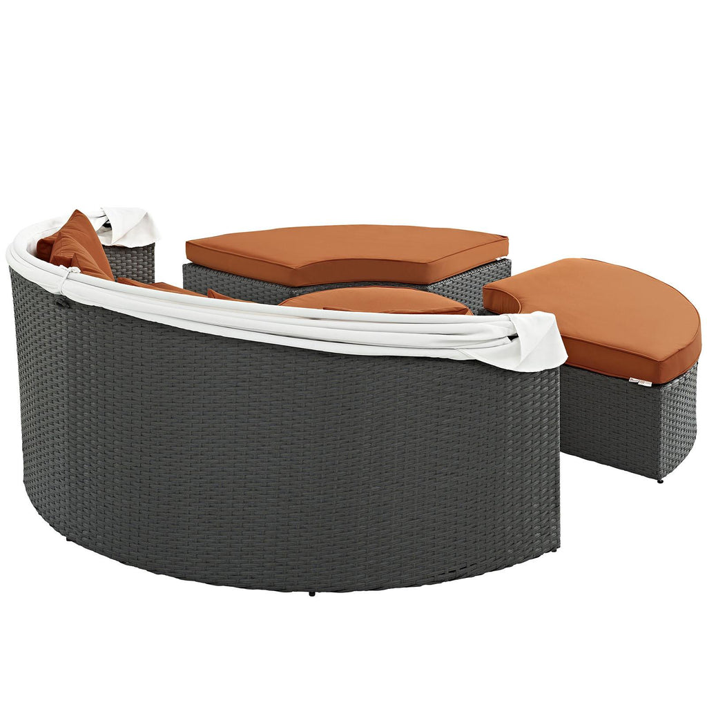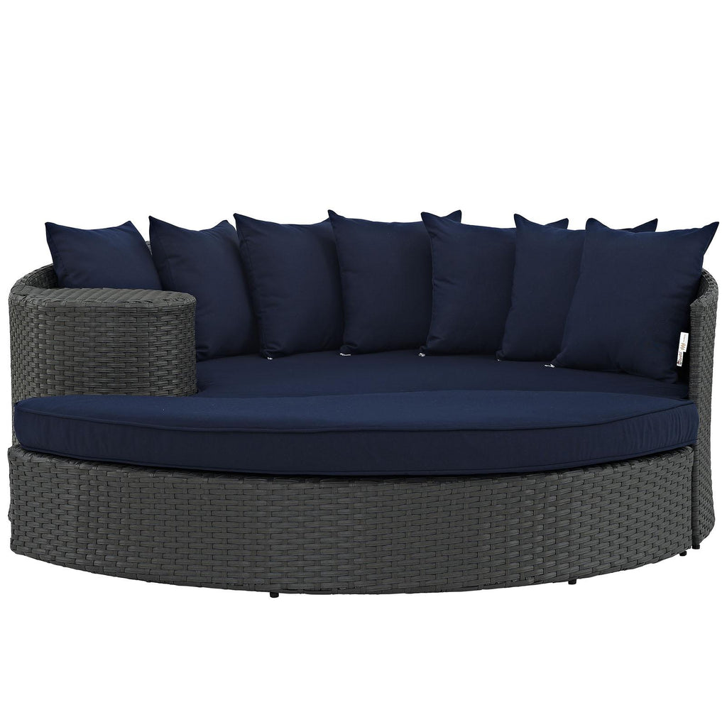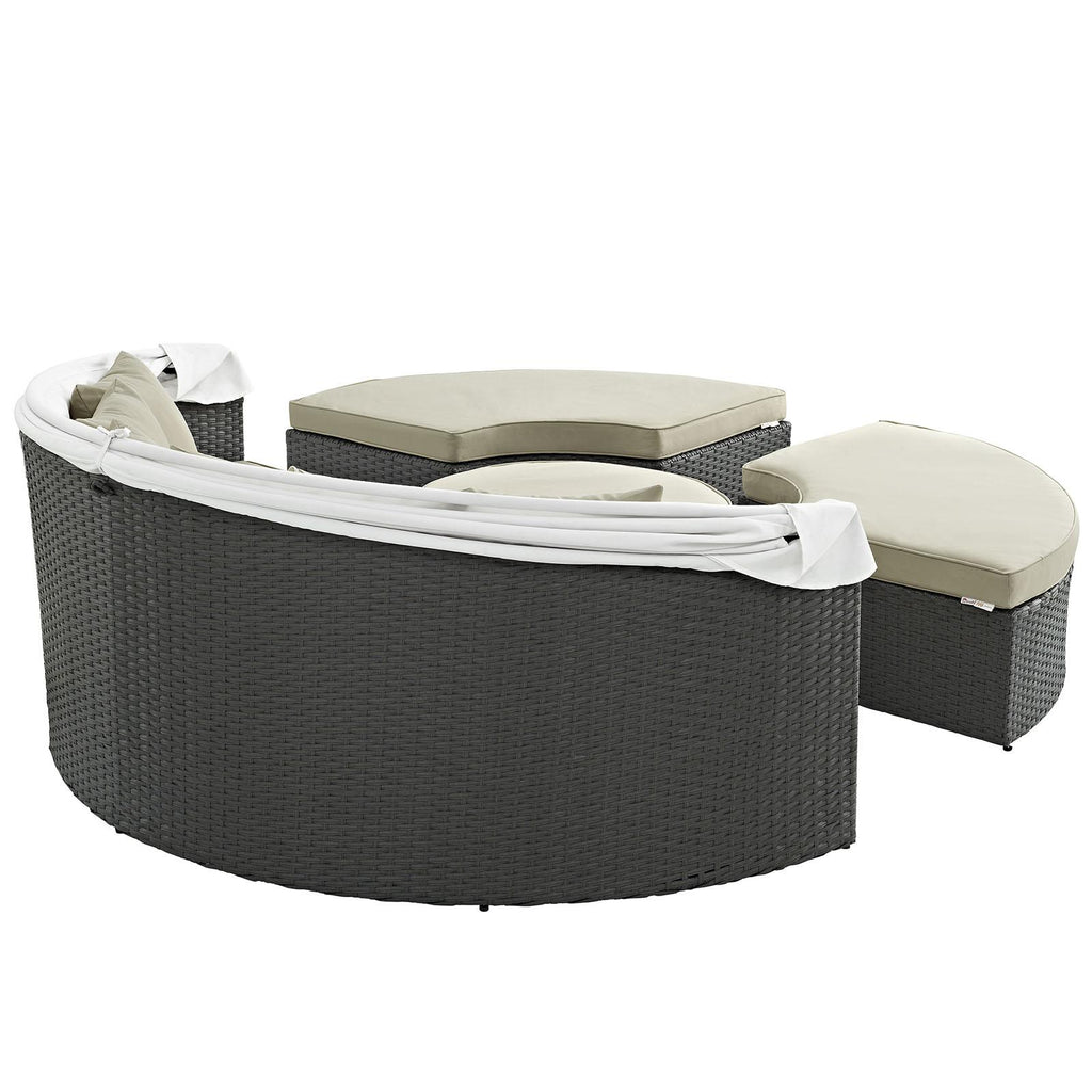Outfit your patio with an imaginative Sojourn Outdoor Patio Furniture series. The Sojourn Outdoor Sectional Sofa Daybed offers a robust seating experience that easily rearranges according to usage. Outfitted with industry-leading Sunbrella� fabric cushions, synthetic rattan weave, UV protection, powder-coated aluminum frame, immensely enjoy your outdoor time with a daybed that enhances patio, backyard, or poolside areas. This installment of the series is an Outdoor Patio Daybed.