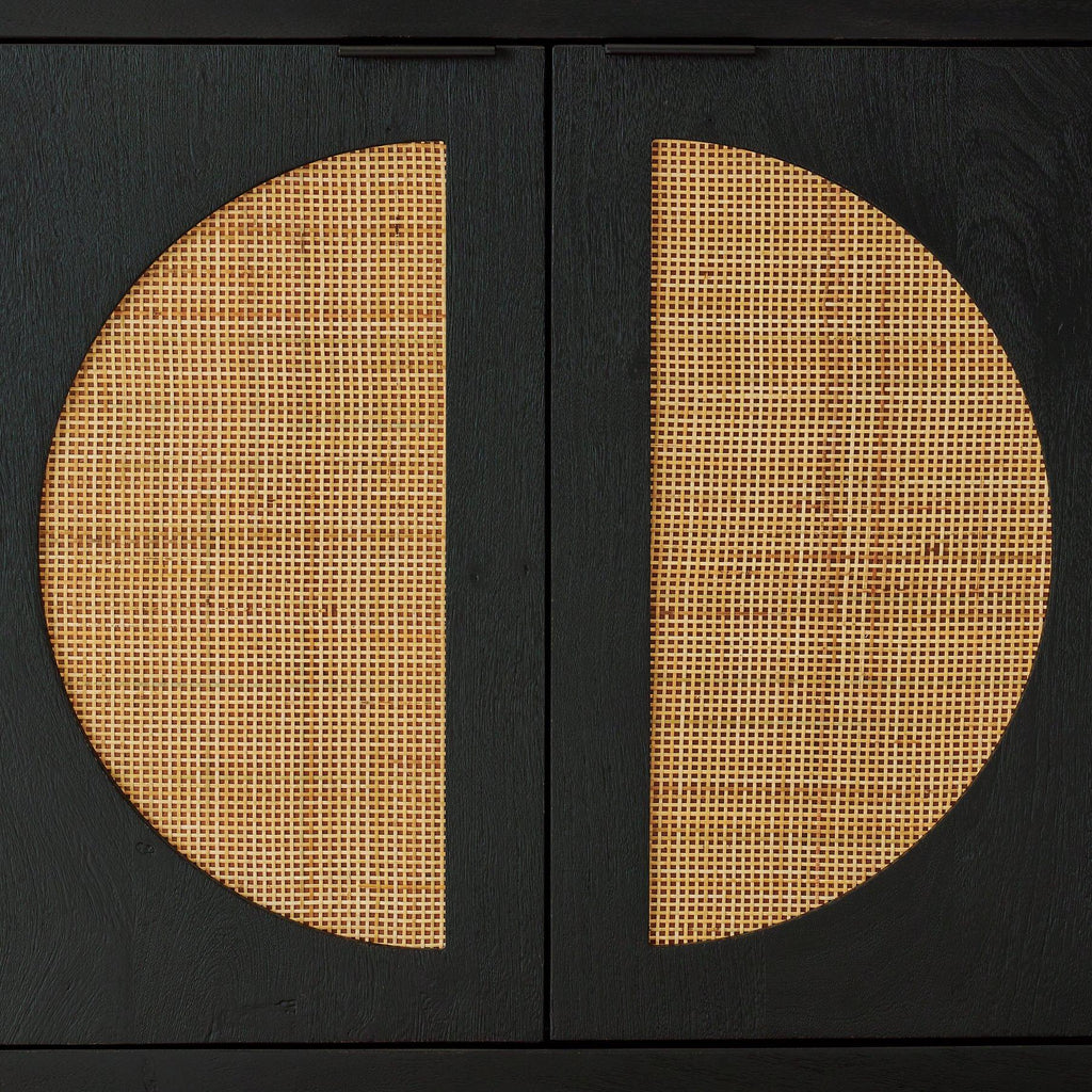 Bring high style and functionality to your home with this contemporary accent cabinet. Woven cane door fronts and a contrasting black finish bring the wow factor to this mid-century inspired piece. Whether it suits your storage needs in the dining room, home office or entryway, it's quite a showpiece.
