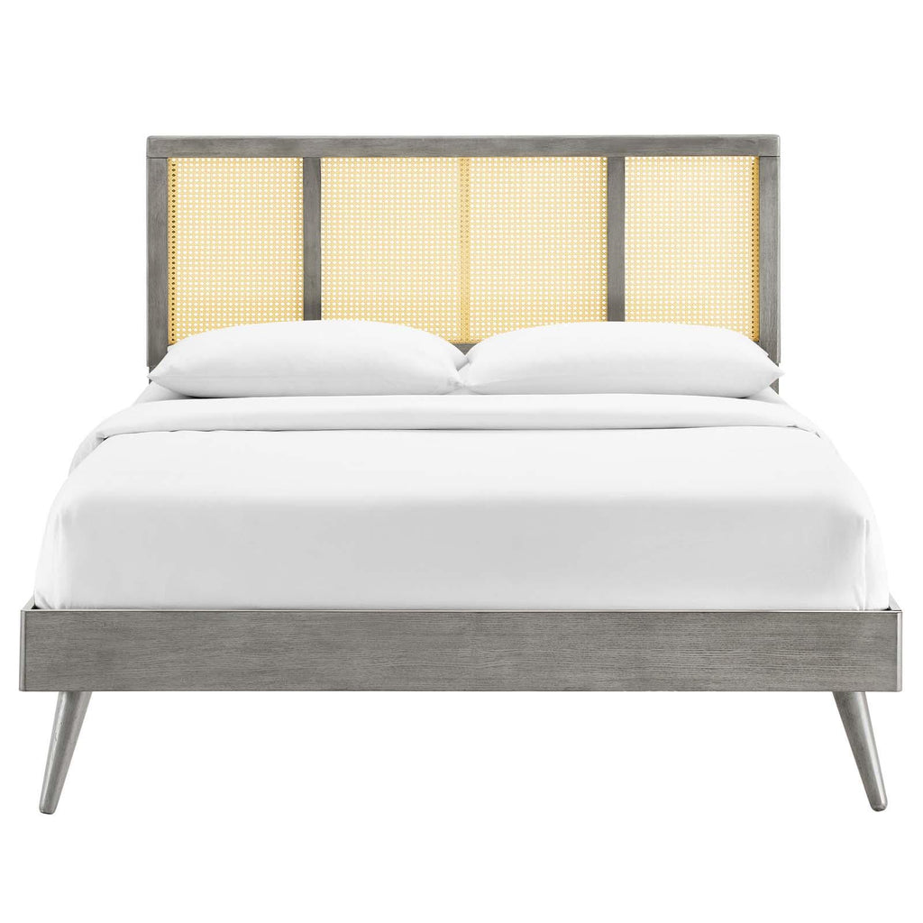 Infuse modern style into your master bedroom or guest room decor with the retro detail and organic aesthetics of the Kelsea Woven Cane Rattan Wood King Platform Bed. Bringing an airy, organic aesthetic to the bedroom, the king size headboard of this wood bed combines mid-century modernity and tropical style with its beautiful cane pattern and natural wood. This platform bed frame is a sturdy addition to the bedroom with a durable wood, MDF, and veneer construction and splayed rubberwood legs. Eliminating the need for a box spring, this king bed is complete with a wood slat support system, reinforced center beam, and supporting legs that make it a lasting mattress foundation for memory foam, latex, innerspring, and hybrid mattresses. Assembly required. King Bed Frame Weight Capacity: 601 lbs.