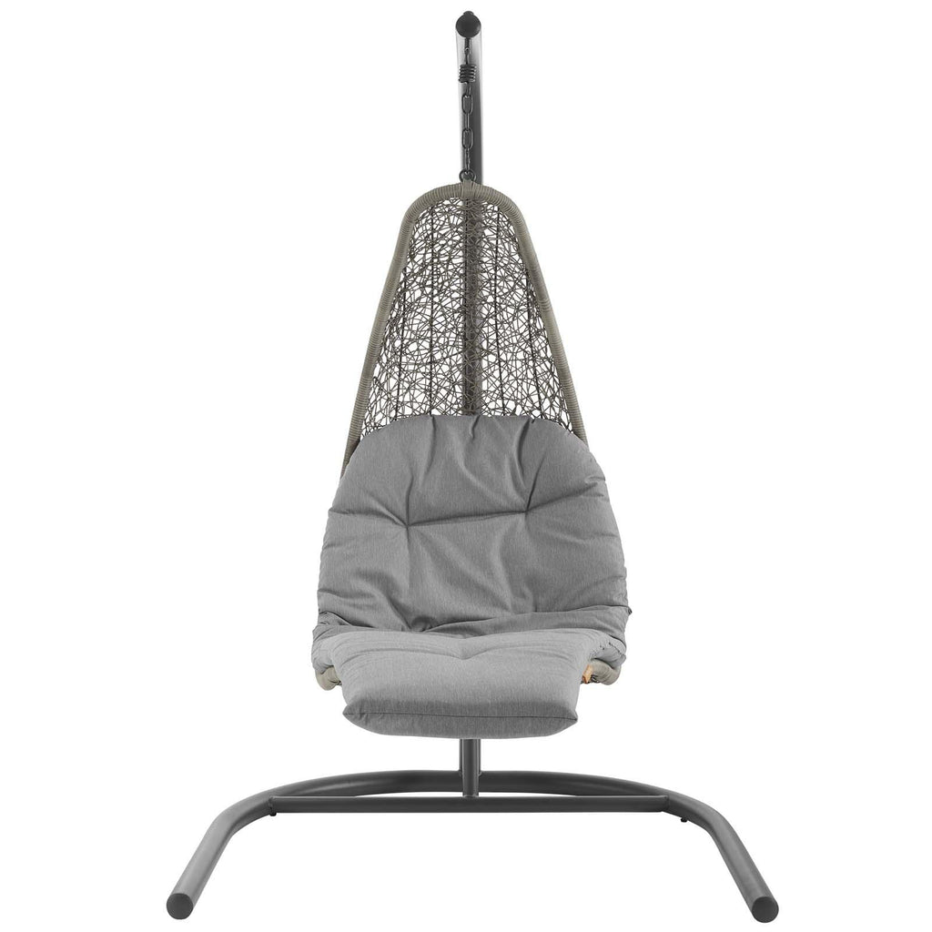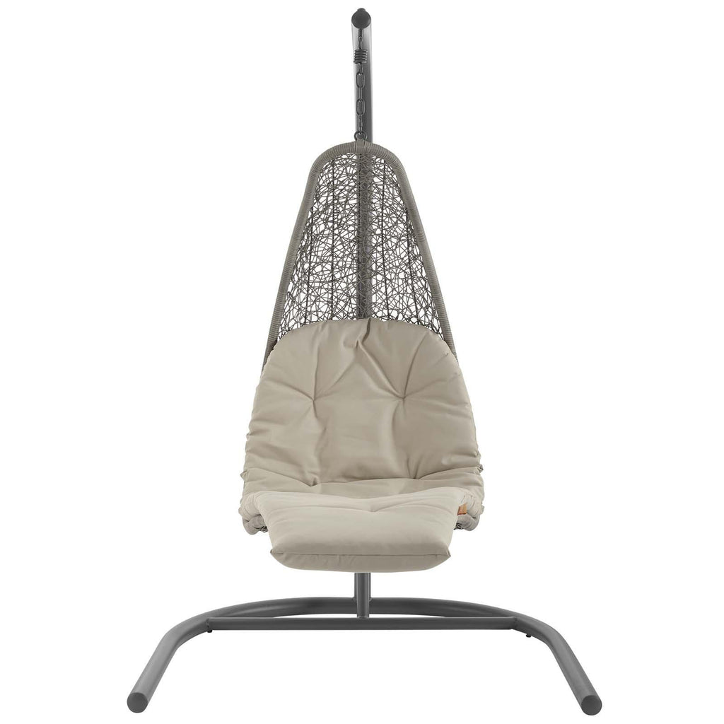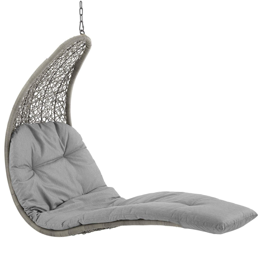 Escape to a place of relaxation with the Landscape Outdoor Patio Hanging Chaise Lounge Swing Chair. Wrapped with a textured synthetic rattan light gray and tan weave, this outdoor chaise lounger features a plush padded cushion upholstered in all-weather polyester fabric for lasting comfort. Hanging from a powder-coated steel frame, Landscape's organic design and sleek profile bring contemporary style to your outdoor patio, backyard, porch, or poolside. Sit back and relax with your feet up while enjoying warm weather and the calming movement of this outdoor porch swing. Includes stand and chain. Hanging Weight Capacity: 264 lbs.