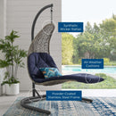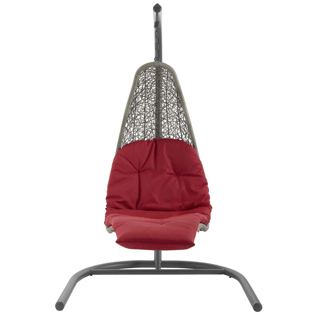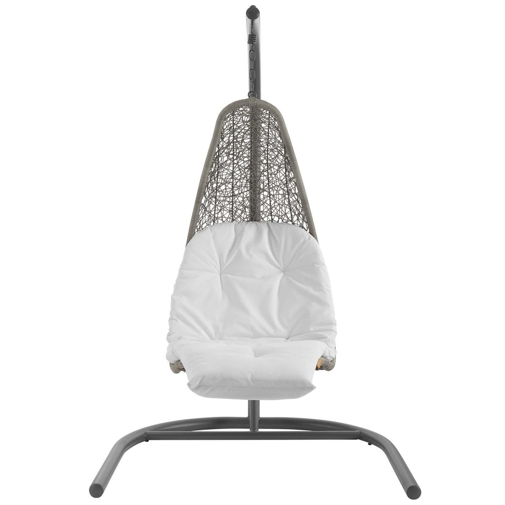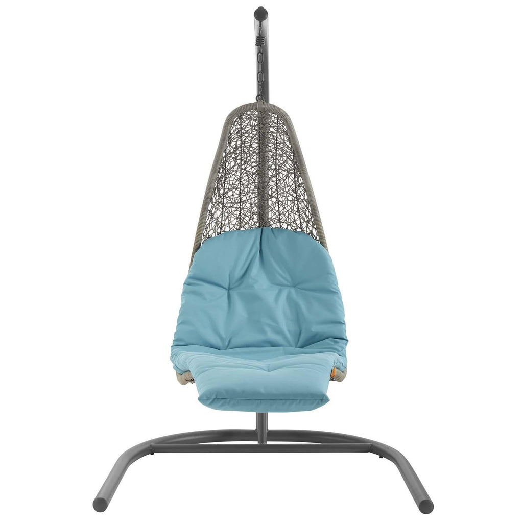 Escape to a place of relaxation with the Landscape Outdoor Patio Hanging Chaise Lounge Swing Chair. Wrapped with a textured synthetic rattan light gray and tan weave, this outdoor chaise lounger features a plush padded cushion upholstered in all-weather polyester fabric for lasting comfort. Hanging from a powder-coated steel frame, Landscape's organic design and sleek profile bring contemporary style to your outdoor patio, backyard, porch, or poolside. Sit back and relax with your feet up while enjoying warm weather and the calming movement of this outdoor porch swing. Includes stand and chain. Hanging Weight Capacity: 264 lbs.
