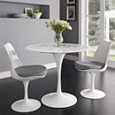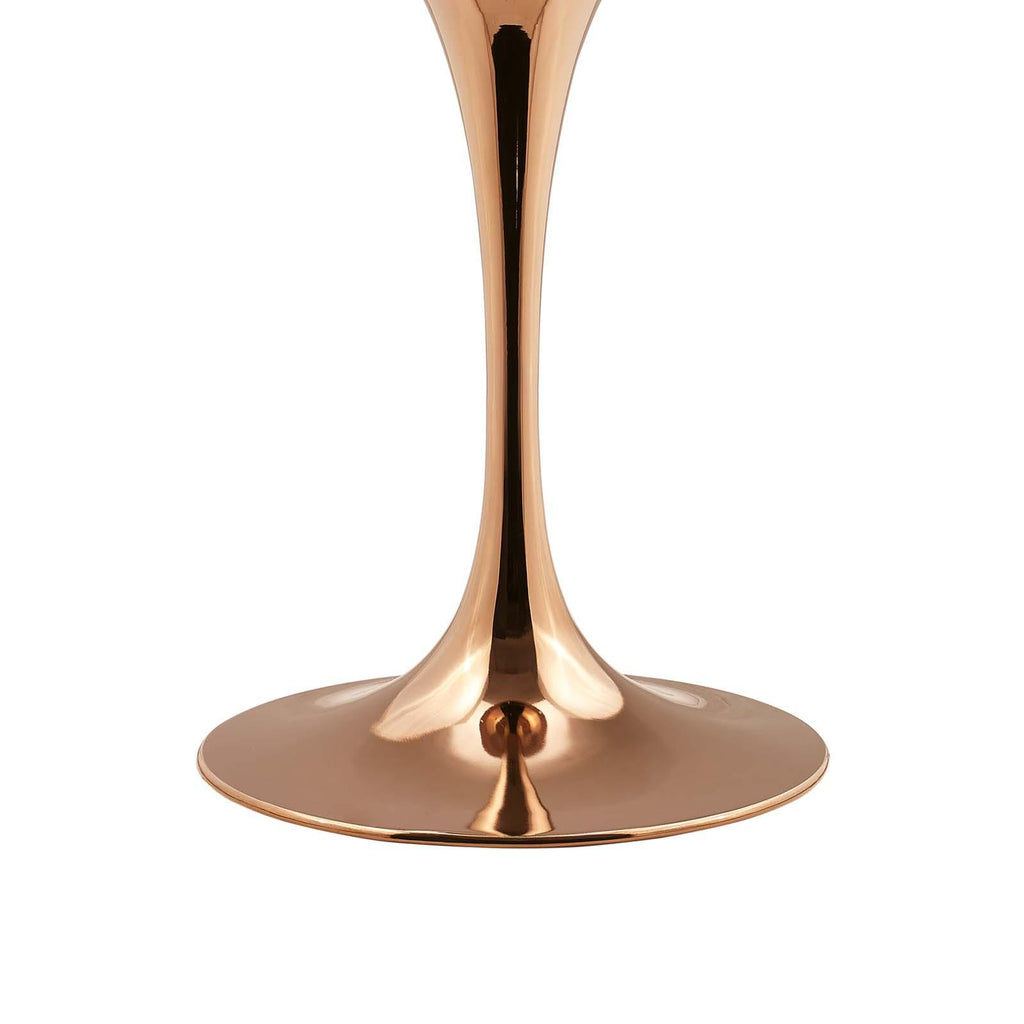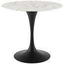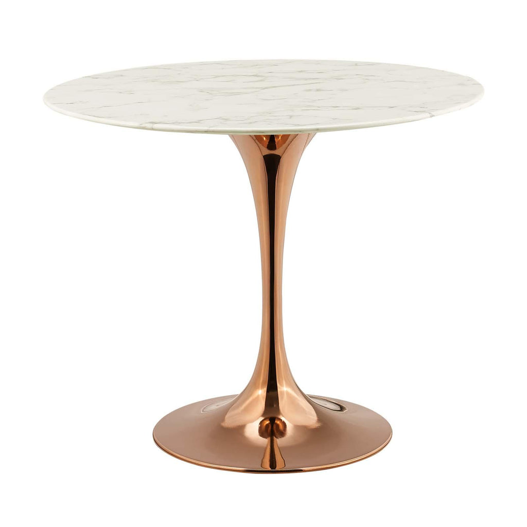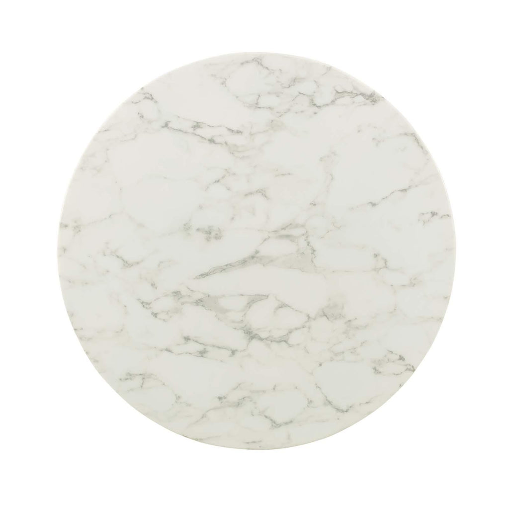 Reflecting a seamless organic shape and timeless form, the Lippa dining table has become a symbol of modernism for over the past 60 years. Before its release, homes were filled with clunky remnants of an industrial age long gone by. But in order to advance into the new world, homes first had to transition from the traditional square table, into a piece that connoted progress. The base and dimensions are true to the original specifications, while the table�s circular artificial marble top, and tapered metal base, are carefully lacquered with a scratch and chip resistant finish.