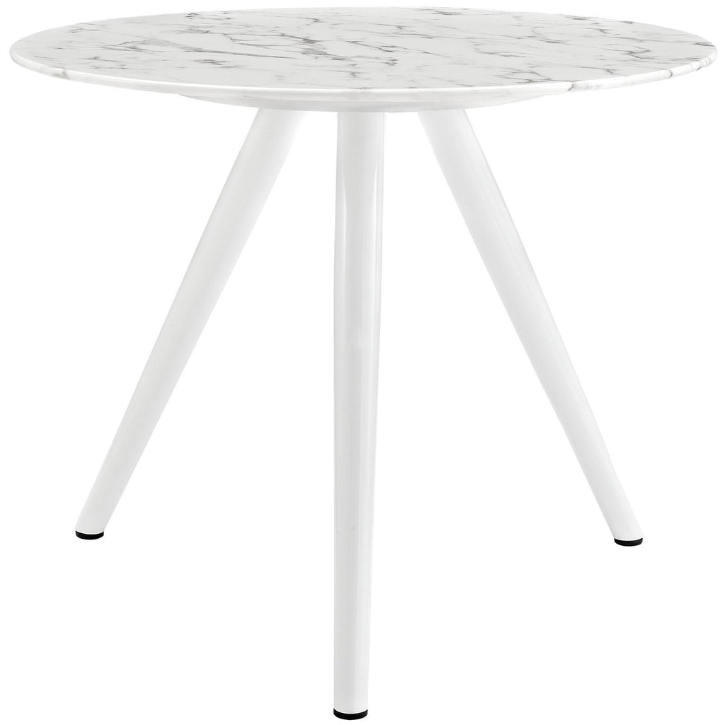 Reflecting a seamless organic shape and timeless form, the Lippa dining table has become a symbol of modernism for over the past 60 years. Before its release, homes were filled with clunky remnants of an industrial age long gone by. But in order to advance into the new world, homes first had to transition from the traditional square table, into a piece that connoted progress. The base and dimensions are true to the original specifications, while the table�s circular artificial marble top and metal legs are carefully lacquered with a scratch and chip resistant finish.