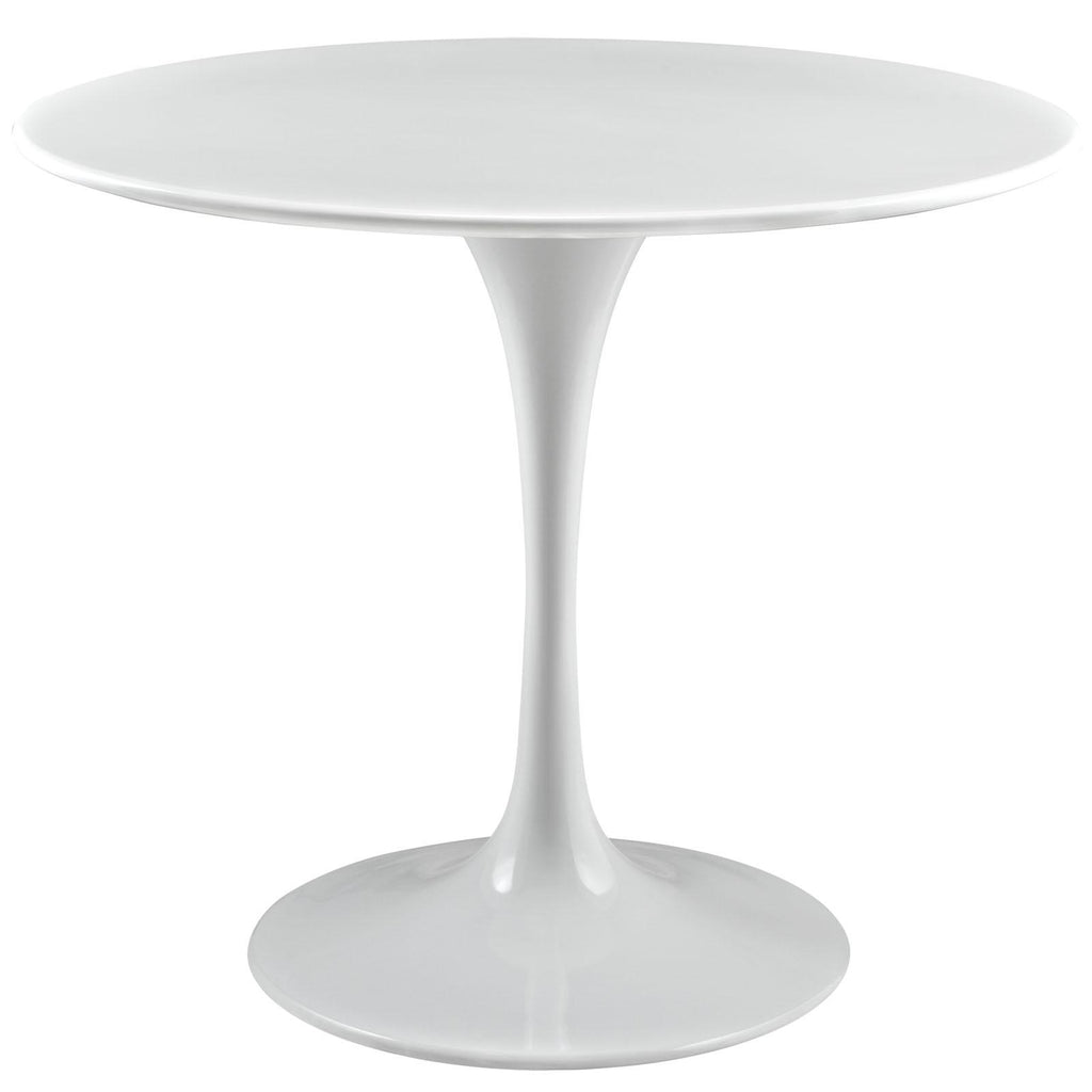 Reflecting a seamless organic shape and timeless form, the Lippa dining table has become a symbol of modernism for over the past 60 years. Before its release, homes were filled with clunky remnants of an industrial age long gone by. But in order to advance into the new world, homes first had to transition from the traditional square table, into a piece that connoted progress. The base and dimensions are true to the original specifications, while the table�s circular white top and metal tapered base are carefully lacquered with a chip-resistant finish.