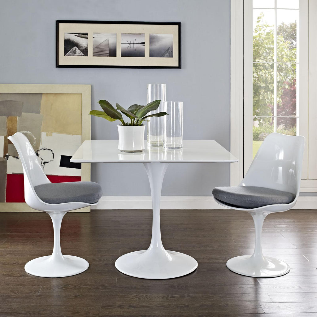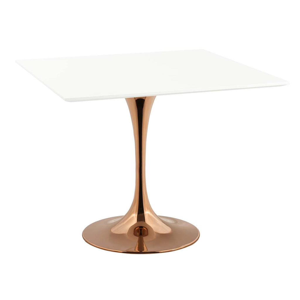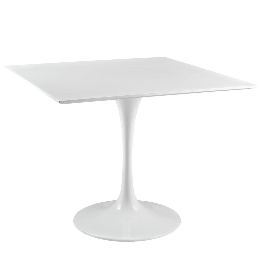 Reflecting a seamless organic shape and timeless form, the Lippa dining table has become a symbol of modernism for over the past 60 years. Before its release, homes were filled with clunky remnants of an industrial age long gone by. But in order to advance into the new world, homes first had to transition from the traditional table, into a piece that connoted progress. The base and dimensions are true to the original specifications, while the table�s square white top and metal tapered base are carefully lacquered with a chip-resistant finish.