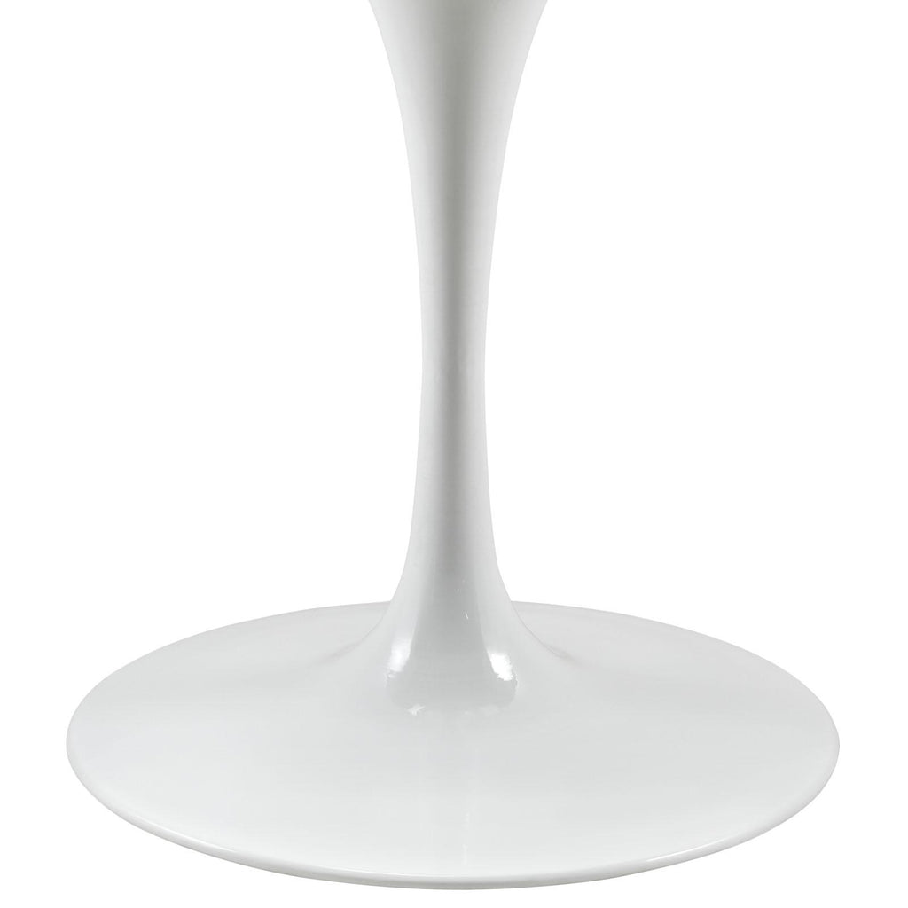 Reflecting a seamless organic shape and timeless form, the Lippa dining table has become a symbol of modernism for over the past 60 years. Before its release, homes were filled with clunky remnants of an industrial age long gone by. But in order to advance into the new world, homes first had to transition from the traditional square table, into a piece that connoted progress. The base and dimensions are true to the original specifications, while the table�s circular white top and metal tapered base are carefully lacquered with a chip-resistant finish. Set Includes: One - Lippa 40" Dining Table Chip Resistant Finish Coated Top Powder-Coated Metal Base Overall Product Dimensions: 39.5"L x 39.5"W x 28.5"H Floor to underside of table: 27.5"H Table Top Thickness: 0.5"H Leg Width: 23.5"W