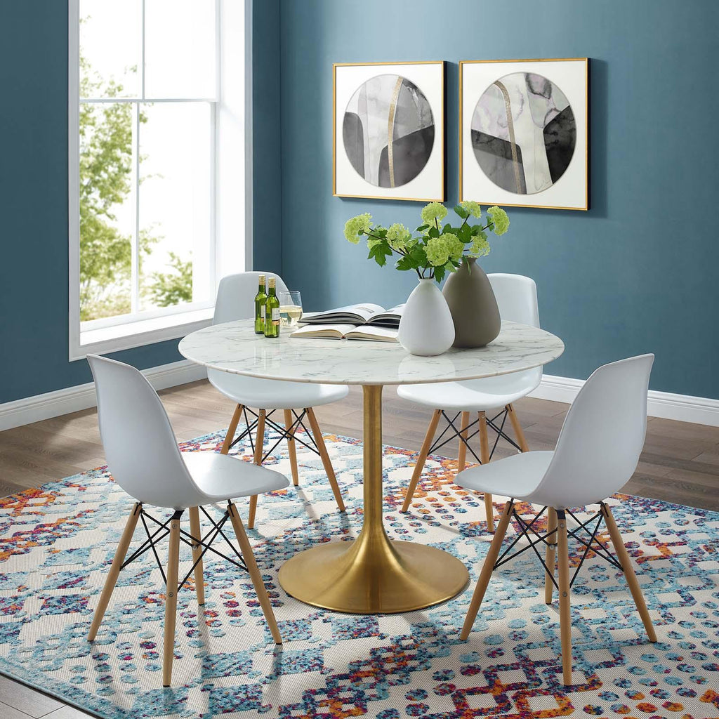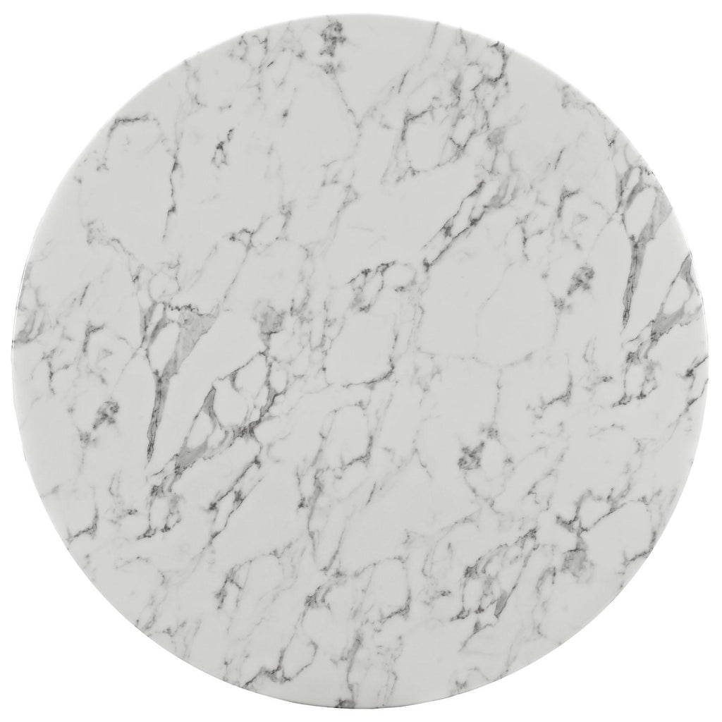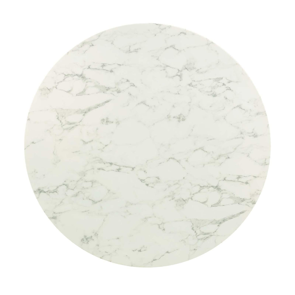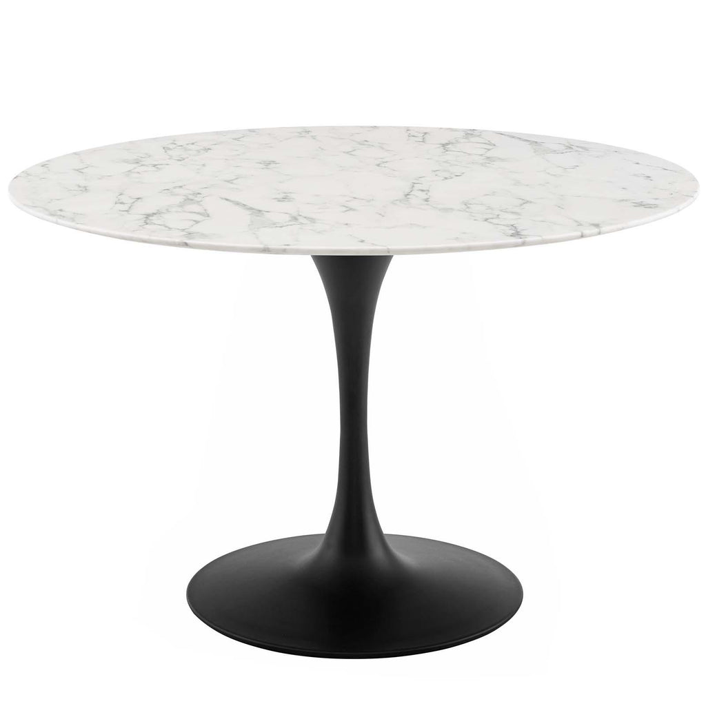 Reflecting a seamless organic shape and timeless form, the Lippa dining table has become a symbol of modernism for over the past 60 years. Before its release, homes were filled with clunky remnants of an industrial age long gone by. But in order to advance into the new world, homes first had to transition from the traditional square table, into a piece that connoted progress. The base and dimensions are true to the original specifications, while the table�s circular artificial marble top, and tapered metal base, are carefully lacquered with a scratch and chip resistant finish. Set Includes: One - Lippa 47" Marble Dining Table Circular Artificial Marble Top Lacquered Metal Base Scratch and Chip Resistant Finish Overall Product Dimensions: 47"L x 47"W x 29.5"H Floor to Underside of Table: 27.5"H Table Top Thickness: 1.5"H Width of Legs: 23.5"W