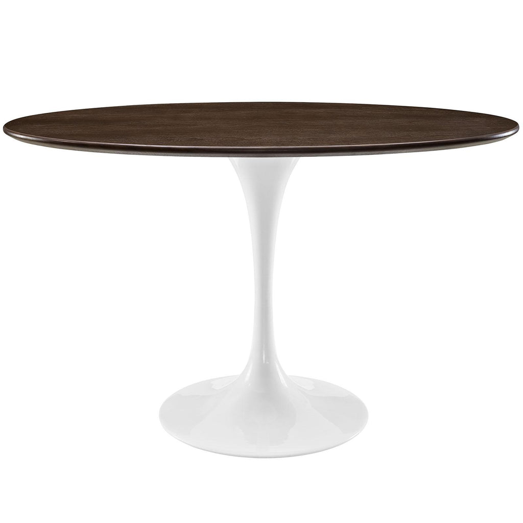 Reflecting a seamless organic shape and timeless form, the Lippa dining table has become a symbol of modernism for over the past 60 years. Before its release, homes were filled with clunky remnants of an industrial age long gone by. But in order to advance into the new world, homes first had to transition from the traditional square table, into a piece that connoted progress. The base and dimensions are true to the original specifications, while the table�s oval-shaped walnut veneer top, and tapered metal base, are carefully lacquered with a chip-resistant finish.