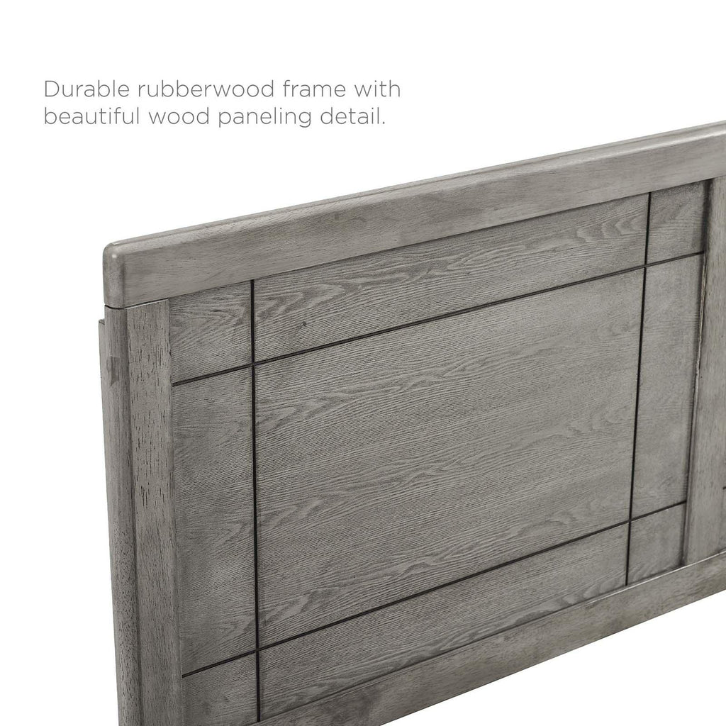 Introduce modern style to your master bedroom or guest room with the retro detail and organic aesthetics of the Marlee Wood King Platform Bed. Inspired by mid-century design, the king headboard of this wood bed features a beautiful window pane design that offers a traditional look. This platform bed frame is a sturdy addition to the bedroom with a durable wood, MDF, and veneer construction and an angular rubberwood frame. Eliminating the need for a box spring, this king bed is complete with a wood slat support system, reinforced center beam, and supporting legs that make it a lasting mattress foundation for memory foam, latex, innerspring, and hybrid mattresses. Assembly required. King Bed Frame Weight Capacity: 601 lbs.
