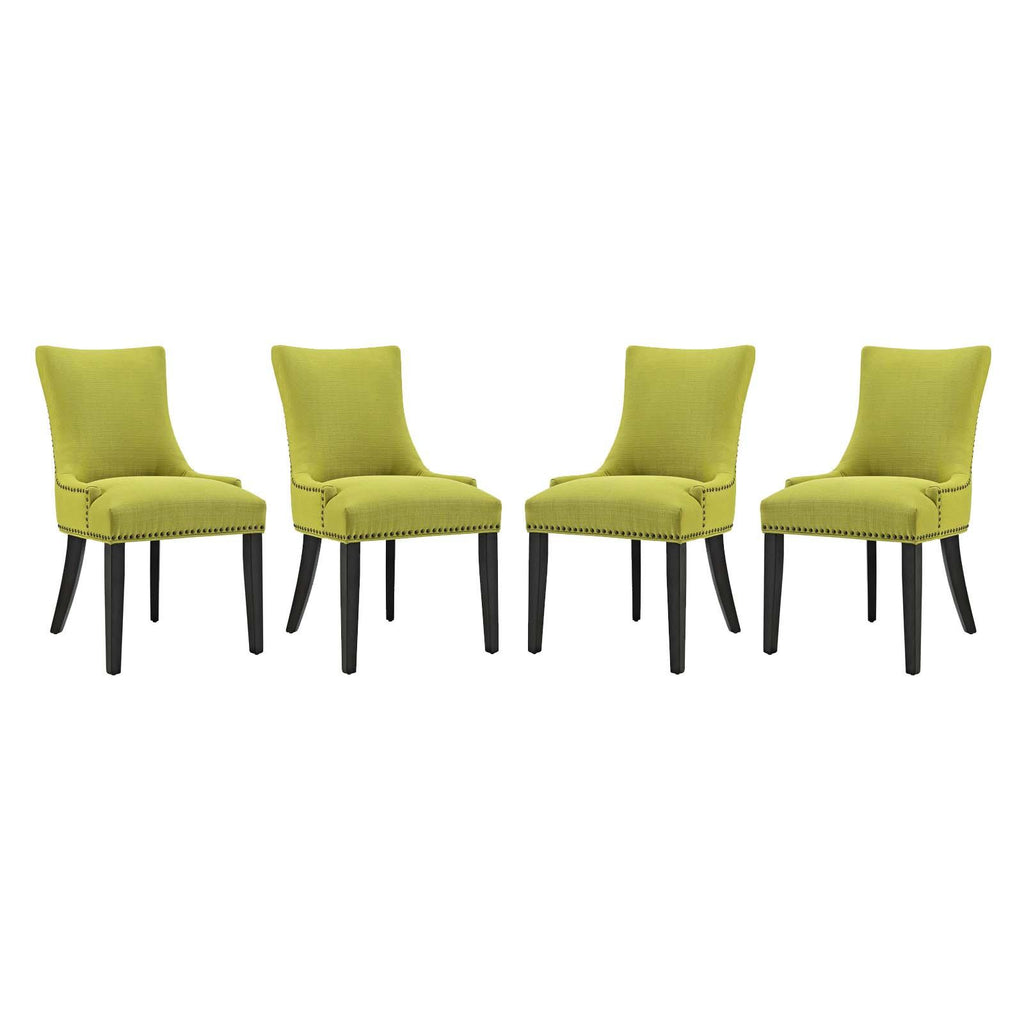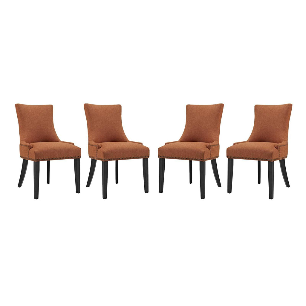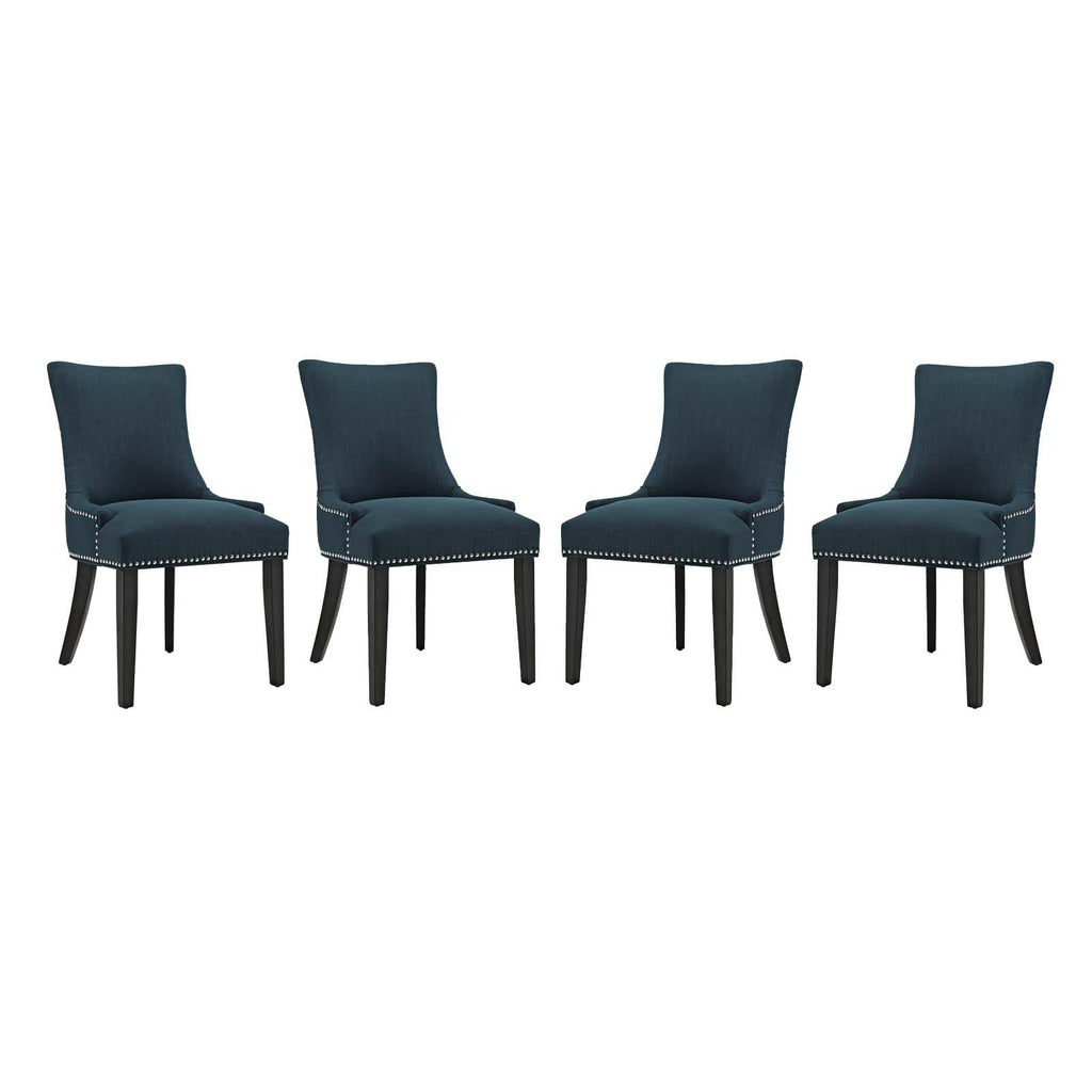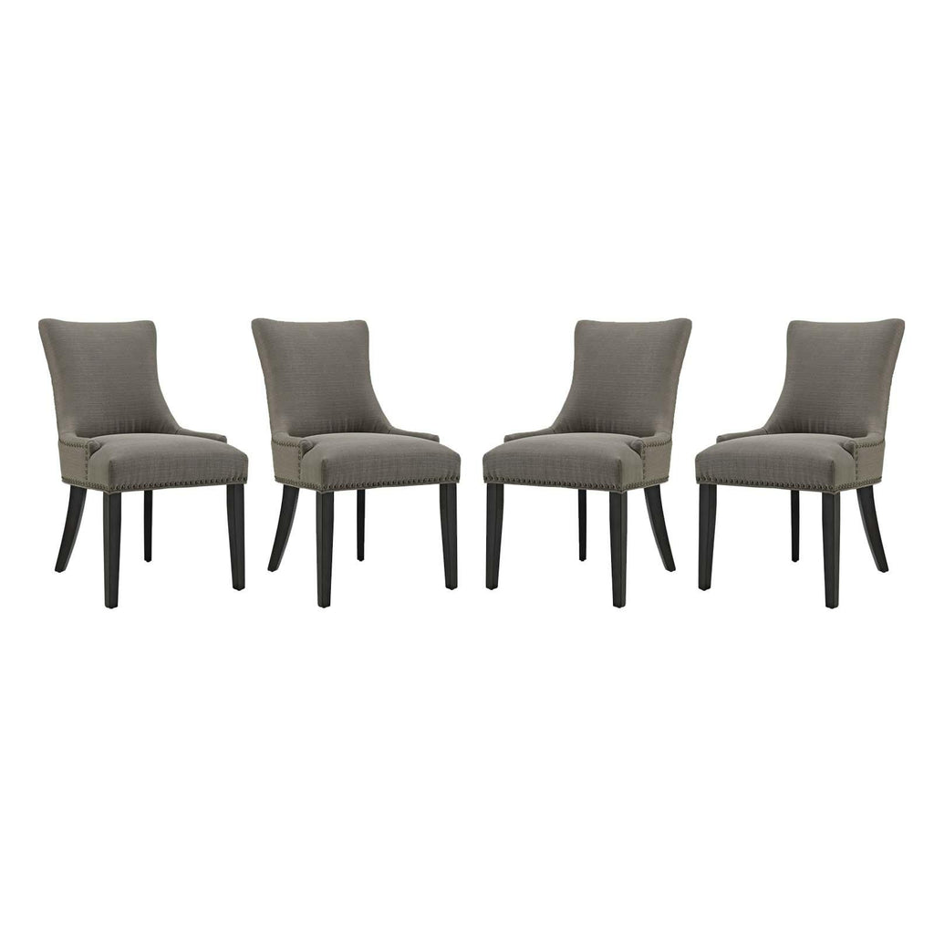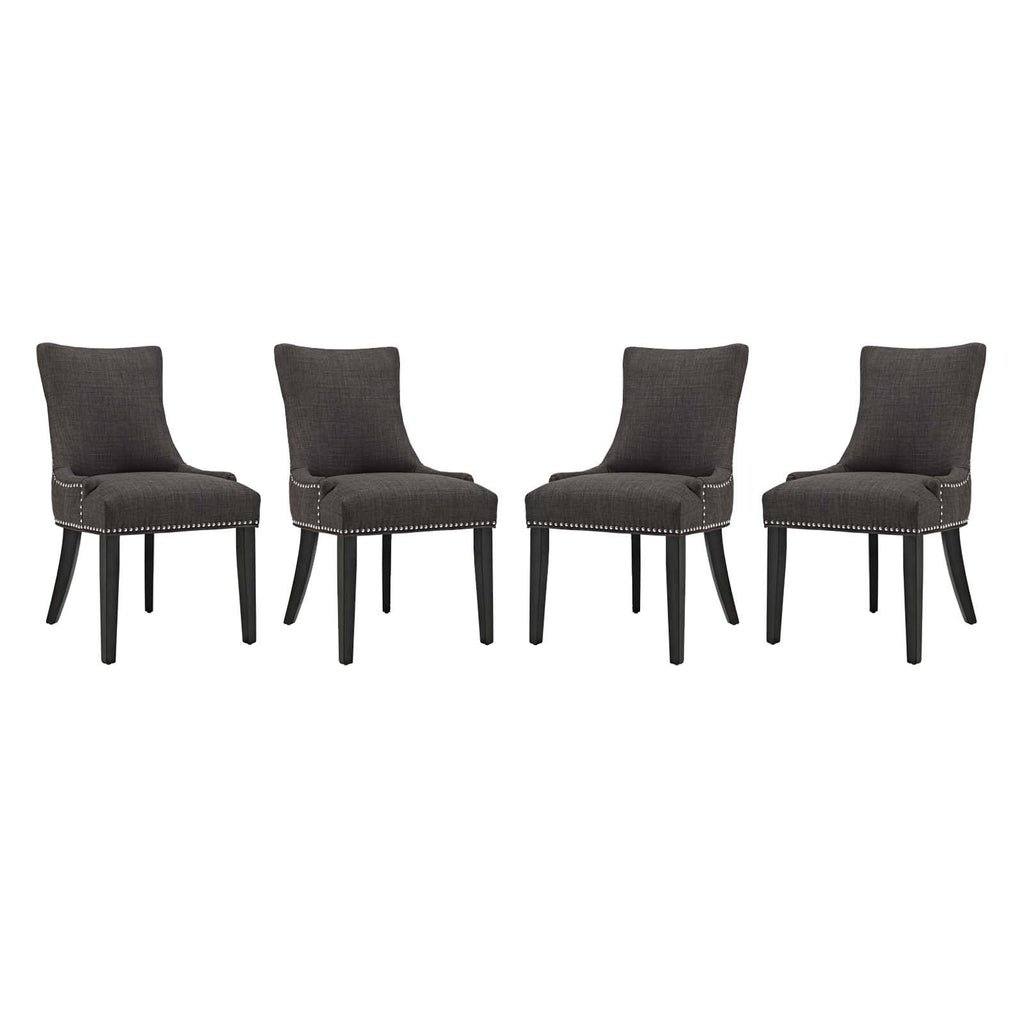 Inspire your d�cor with the Marquis Dining Side Chair. Marquis is fashioned with a chic hourglass shaped back, studded nailhead trim, non-marking foot caps, tapered wood legs, and a regal seat generously padded in foam and upholstered in polyester fabric. Marquis works well in both modern and traditional dining rooms.