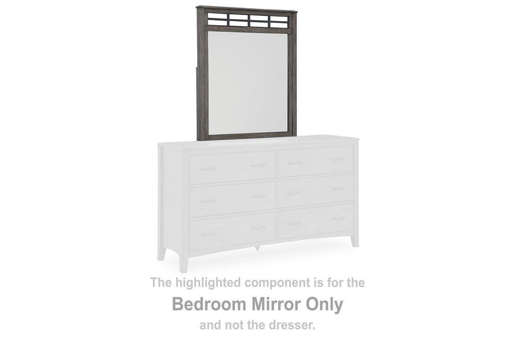 Cool and clean, yet warm and inviting. This dresser with mirror has so many standout qualities, making it an inspired choice for your dream destination. A prime example of “casual contemporary” style at its very best, these designer pieces are dressed to impress with an embossed wood grain texture. Spacious inset drawers with fully finished interiors offer ample storage for your wardrobe and spare bed linens. And the medium gray-brown finish with a blackened wood grain is wonderfully easy on the eyes.
