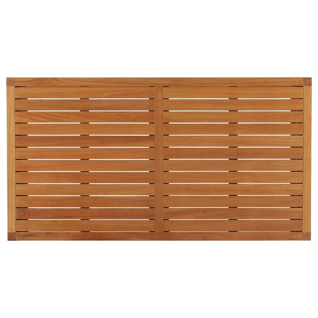 Experience wondrous sunsets and spirited al fresco dining with the Newbury Premium Grade A Teak Outdoor Patio Collection. A versatile addition to balconies, backyards, patios, gazebos, poolside or garden spaces, the Newbury Collection comes with matching armchair, sofa, ottoman, coffee table, and accent chair selections for a durable outdoor teak set that comes with a variety of dining and casual living seating options. Complete with a spacious, contemporary design, this installment of the series is a coffee table. Set Includes: One - Newbury Coffee Table Outdoor Teak Coffee Table Premium Grade A Teak Wood Sealed and Water Resistant Side Stretcher Support Assembly Required Overall Product Dimensions: 29"L x 54"W x 14"H Table Top Thickness: 0.5"H Floor to Underside of Table: 12.5"H Base Width: 54"W