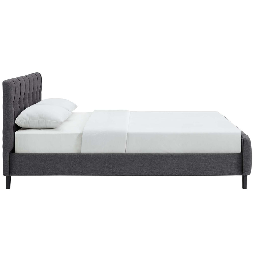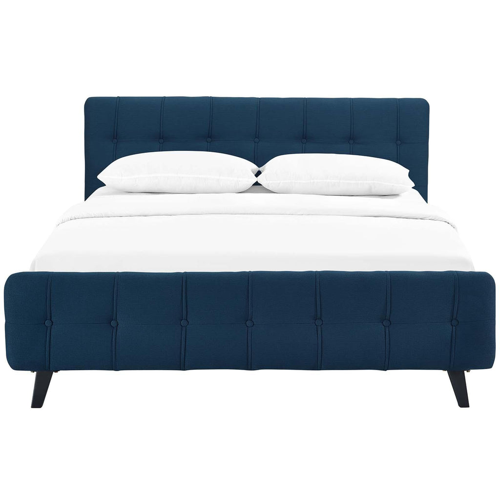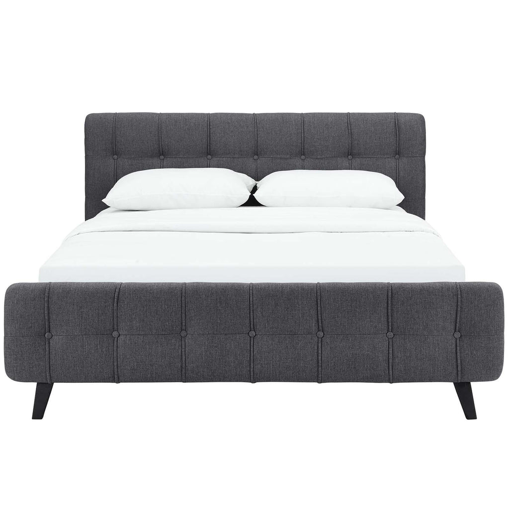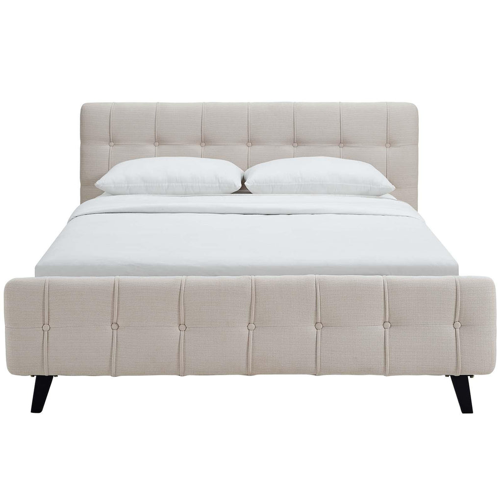 Restyle your bedroom d�cor with the Ophelia Platform Bed. Designed with luxury chic button tufted headboard and footboard, Ophelia comes upholstered in polyester featuring elegant trimming, black stained wood legs, and a slatted wood support system that eliminates the need for a box spring. Complete with a reinforced center beam with supporting legs for maximum stability, the Ophelia integrated bed frame accommodates the various mattress types on the market such as memory foam, spring, latex, and hybrid. A modern centerpiece to your bedroom, Ophelia is a quality modern bed poised to thoroughly transform your space. Weight capacity up to 1300 lbs. Mattress Not Included.