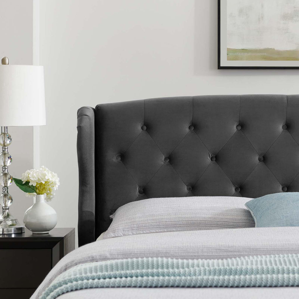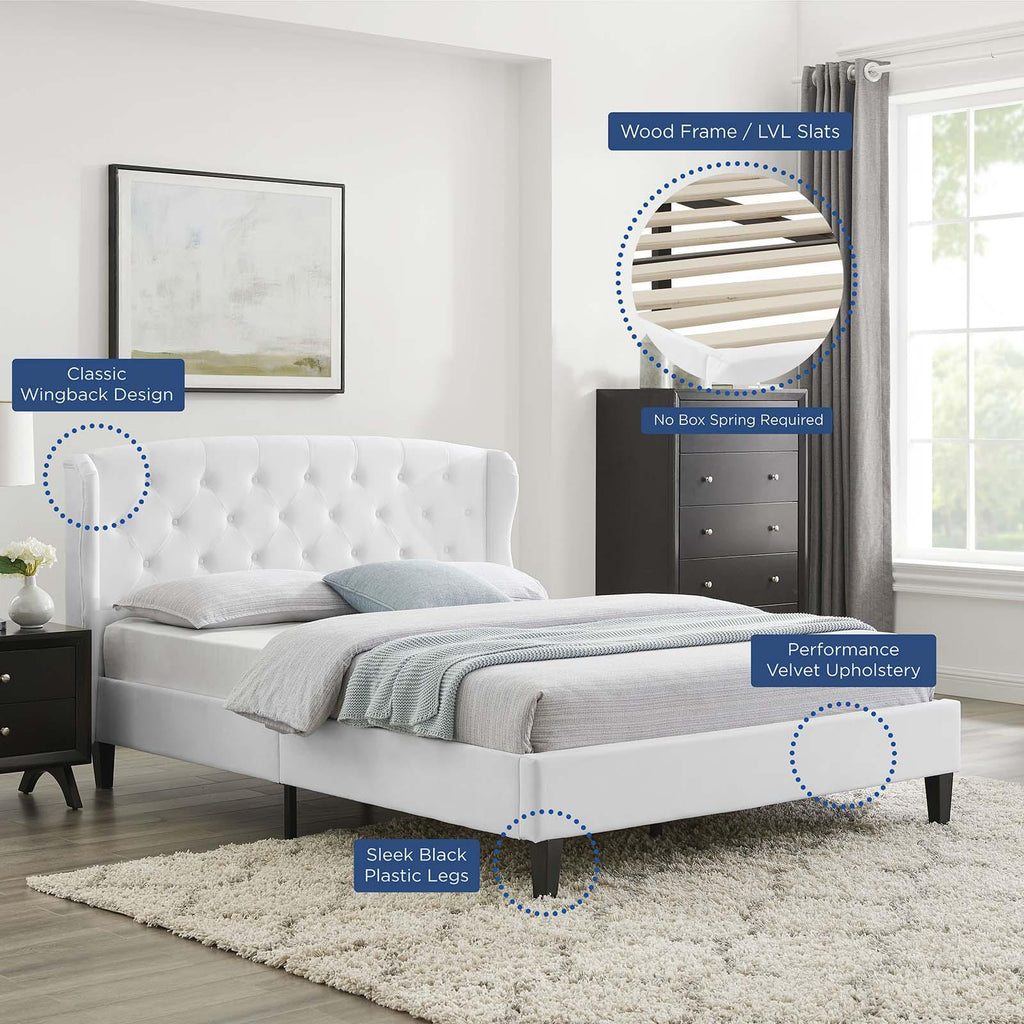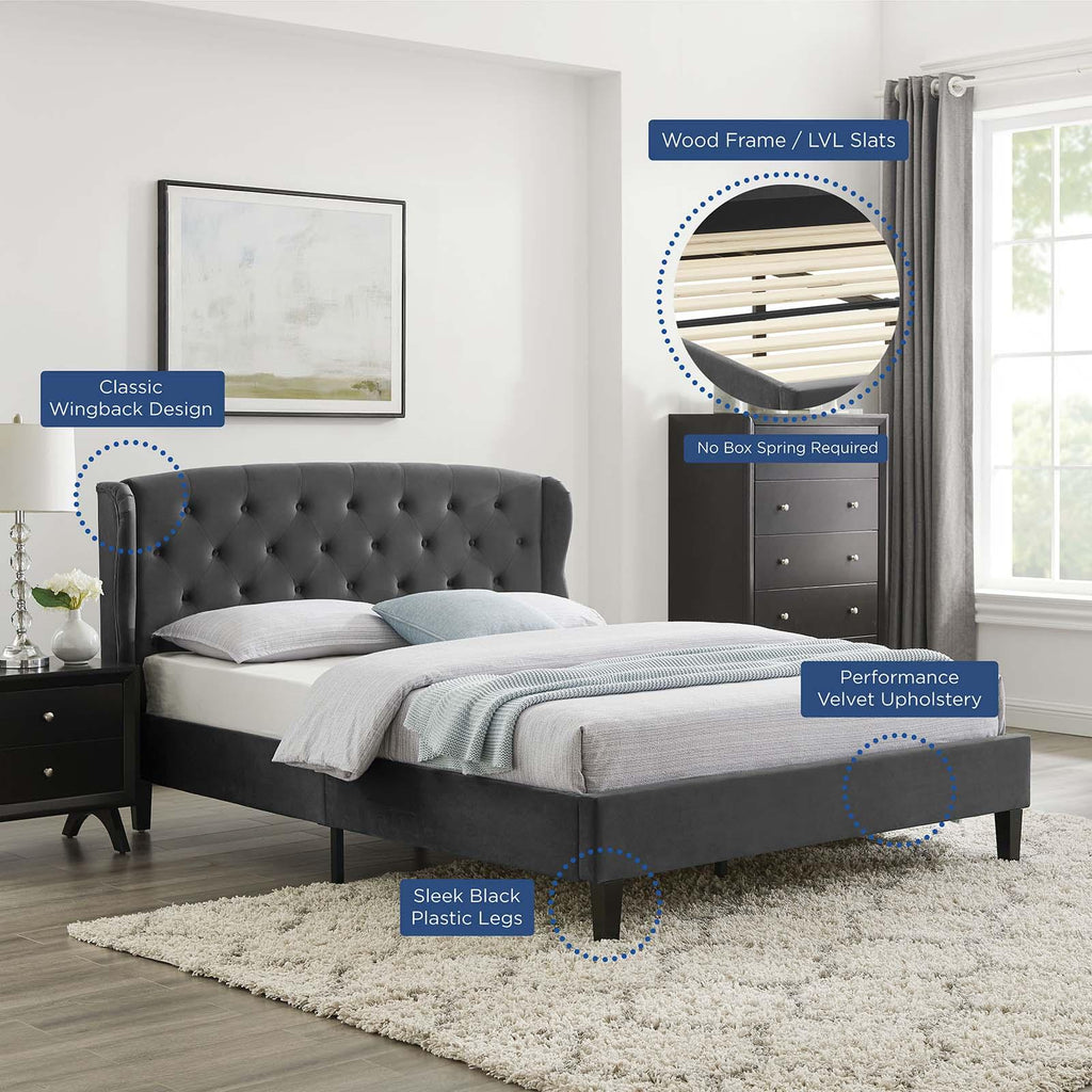 Penelope Tufted Wingback Queen Performance Velvet Platform Bed