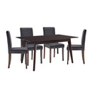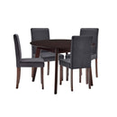 Offer your dining decor an effortlessly elegant update with the 5 Piece Prosper Dining Room Set which features one 47� Rectangle Dining Table and four Modern Velvet Upholstered Parsons Dining Chairs. Defined by chic simplicity, this modern set completes your dining experience with its sturdy construction and comfortable seating experience. Dining Table is constructed with MDF top with four tapered wood legs and Dining Chairs have a rubberwood frame, cushioned with dense foam padding, and covered with soft and durable stain-resistant performance velvet polyester upholstery. Prosper is a modern Parsons chair set that enhances any contemporary home or apartment. Assembly Required. Chair Weight Capacity: 331 lbs.