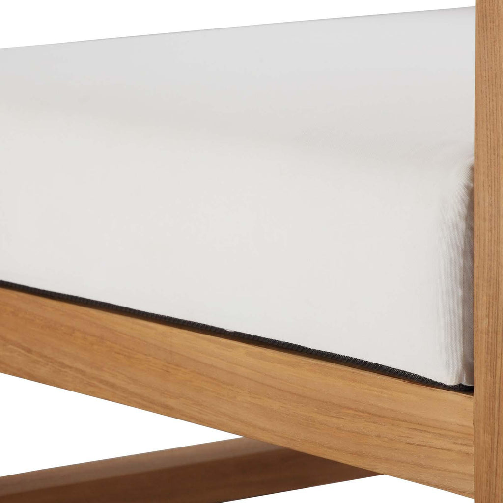 Refresh your outdoor d�cor with the Upland Teak Wood Outdoor Patio Furniture Collection. Boldly designed with eye-catching appeal, the Upland Outdoor Patio Teak Wood Right-Arm Chair is made of solid teak wood and solidly build construction. The perfect choice for balconies, backyards, patios, gazebos, poolside or garden spaces, this outdoor patio sectional sofa piece creates a custom seating experience with its modular design. Known for its ability to withstand extreme weather conditions, teak is the wood selection of choice for long-lasting outdoor furnishings. Rich in modern style, the Upland Outdoor Patio Sectional Sofa Collection opens up a variety of configurations to suit any gathering. Assembly required.