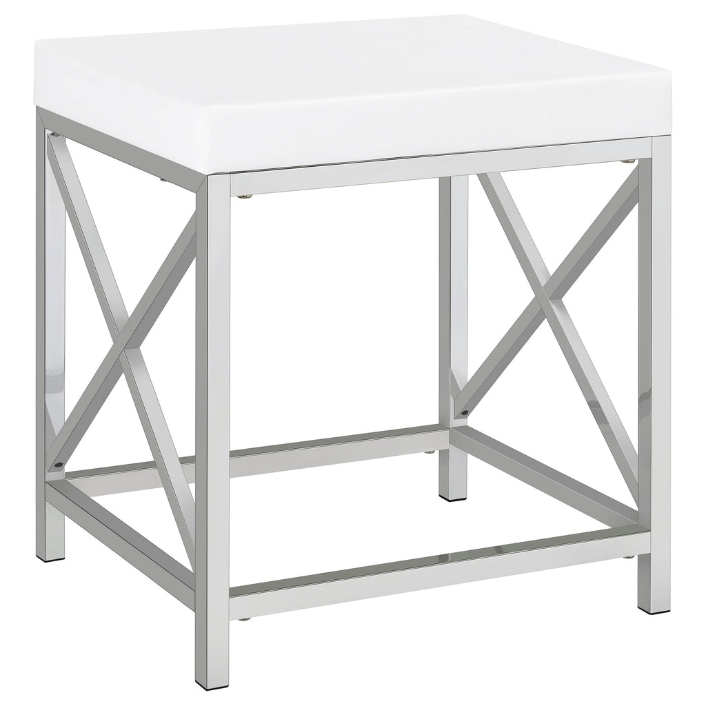 Elevate your morning rituals with a compact, contemporary vanity set, including table, mirror and stool. Perfect for makeup and hair, the vanity shows off a bright white finish with a large drawer for stashing your daily necessities. On top, a lighted mirror adds Hollywood glamour while providing bright illumination so you can see every detail as you get ready for everything from running errands to a girl's night out. The desk is accompanied by a backless stool, providing an easy spot to sit as you prepare for the day. The stool features a base with X-shaped braces to match the desk and includes a white faux leather seat with lovely padding that starts your day on the right foot. Key Features: • Bright white finish with a large drawer for stashing your daily necessities • Lighted mirror adds Hollywood glamour while providing bright illumination • Desk is accompanied by a backless stool with X-shaped braces and a white faux leather seat with lovely padding • Compact and contemporary design perfect for makeup and hair • Easy to assemble and maintain for long-lasting use